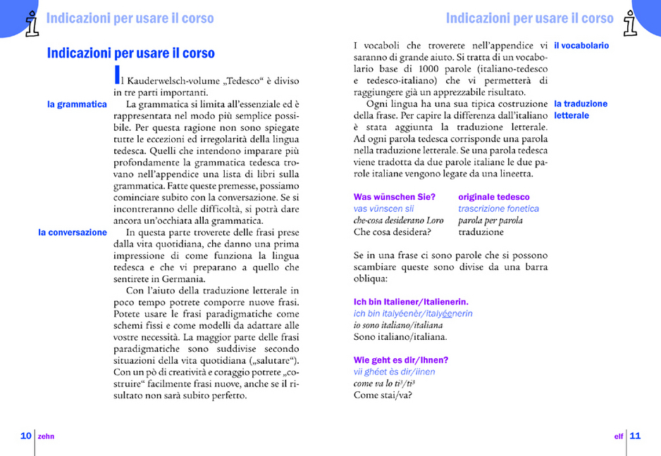 Le guide Kauderwelsch sono diverse! Perché? Perché vi metterà in grado di parlare e capire la gente veramente. Come funziona? Oltre a quello che presentano tutti i corsi di lingua, cioè vocaboli, modelli di frasi, ecc., i volumi della serie Kauderwelsch si distinguono per le particolarità seguenti: La grammatica si limita all'essenziale, cosicché è possibile senza studiare troppo cominciare a parlare, anche se non perfettamente. Tutte le frasi vengono tradotte in italiano due volte: da una parte parola per parola, dall'altra parte in buon italiano. Così il sistema della lingua straniera viene capito molto bene. In una lingua straniera diferiscono p. es. la costruzione della frase e il modo d'esprimersi molto dall'italiano. Senza questo tipo di traduzione è praticamente impossibile cambiare velocemente alcune parole in una frase. Le autrici e gli autori della serie Kauderwelsch sono giramondi che hanno appreso la lingua nel paese. Perciò sanno precisamente come parla la gente nella vita quotidiana. Il suo modo d'esprimersi è per lo pi molto pi semplice e pi diretto p. es. della lingua della letteratura. Particolarmente importante sono il linguaggio del corpo, gesti, segni e regole di comportamento nel paese turistico. Senza questi informazioni anche i conoscitori della lingua non vengono in contatto con la gente. Per questo in tutti i volumi della serie si pone attenzione a questo tipo di comunicazione. * Le guide di dizione della serie Kauderwelsch non sono testi scolastici ma molto pi di un corso di lingua! Investendo poco tempo e imparando alcuni vocaboli otterete informazioni e farete esperienze che altrimenti rimangono nascoste agli altri turisti. +++ Das bewährte Kauderwelsch-Prinzip mit Wort-für-Wort-Übersetzung eignet sich auch hervorragend zur Vermittlung der deutschen Sprache. Dieses Buch wendet sich an alle, die die italienische Sprache beherrschen, und die schnell und unkompliziert Deutsch lernen möchten.