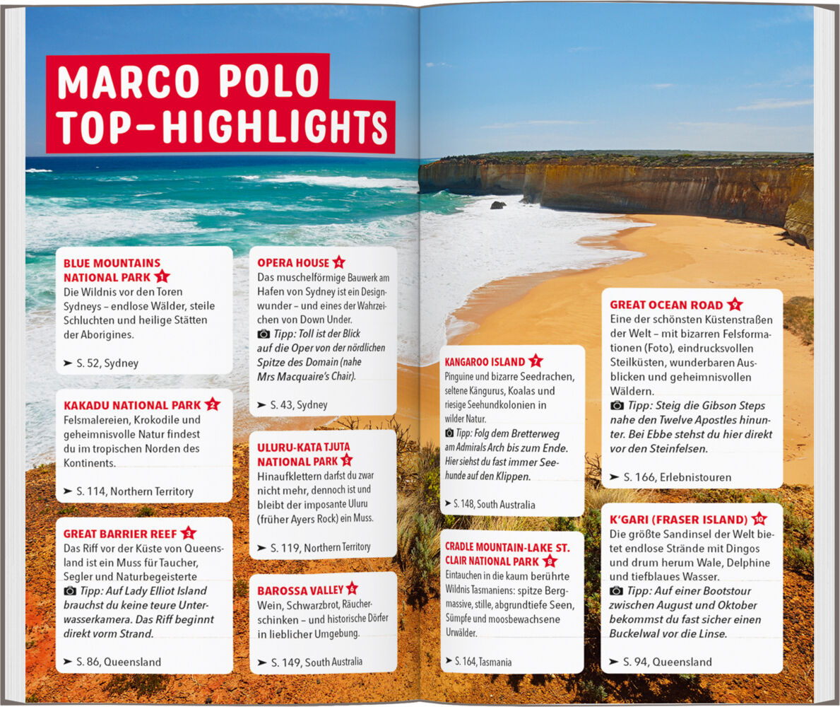 Unterwegs auf dem roten Kontinent mit dem MARCO POLO Reiseführer Australien Wenn du dich nach Weite sehnst, komm nach Australien! Hier ist alles etwas größer, weiter, anders: die Erde ist rot, das Gefieder der Schwäne schwarz und im Winter herrscht Sommer. Be...