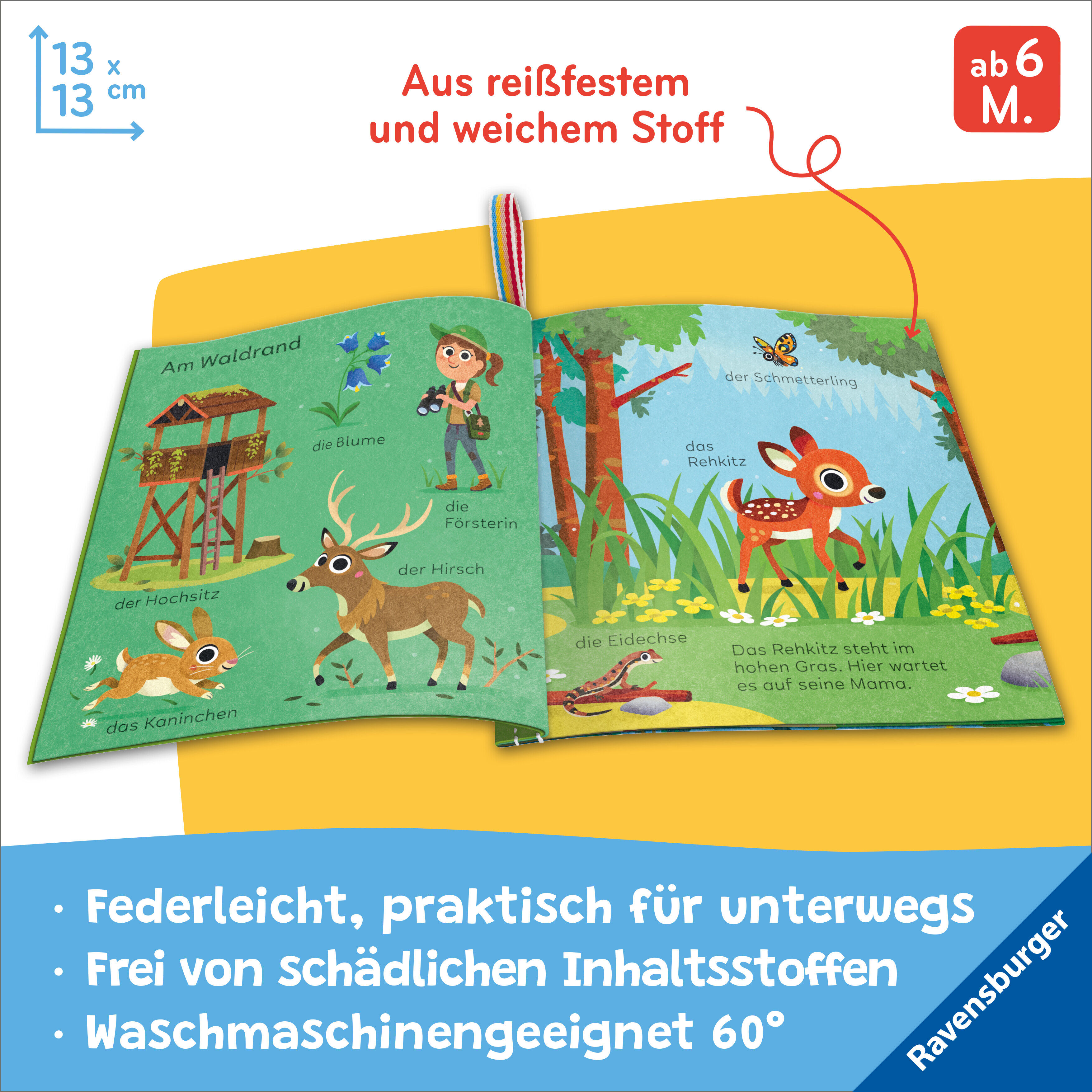 Fühlbuch Klappentext Stoffbuch zum Kuscheln, Knabbern und Baden Im Wald leben viele spannende Tiere. Lerne die Waldbewohner wie Reh, Specht, Fuchs oder Eichhörnchen kennen und entdecke, welche Tiere nachts unterwegs sind. Ein kuschelstarkes Buch für jede Geleg...