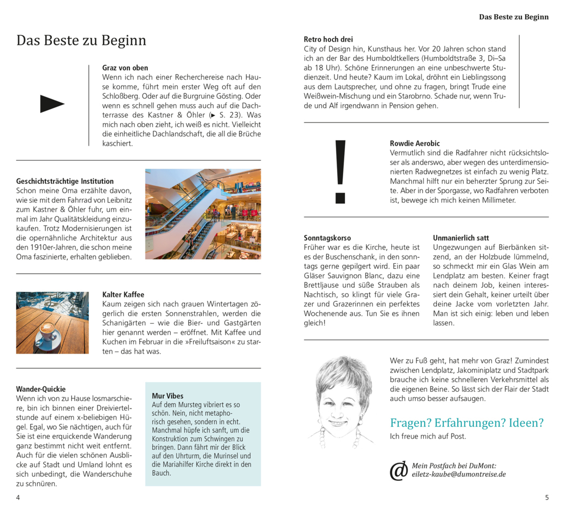 Im sonnenverwöhnten Graz bekommen Avantgardefestivals wie Steirischer Herbst und Styriarte nicht weniger Applaus als das Aufsteirern, das größte Trachtenspektakel Österreichs, hier treffen sich mediterranes Lebensgefühl, Genussfreudigkeit und sympathischer Sc...