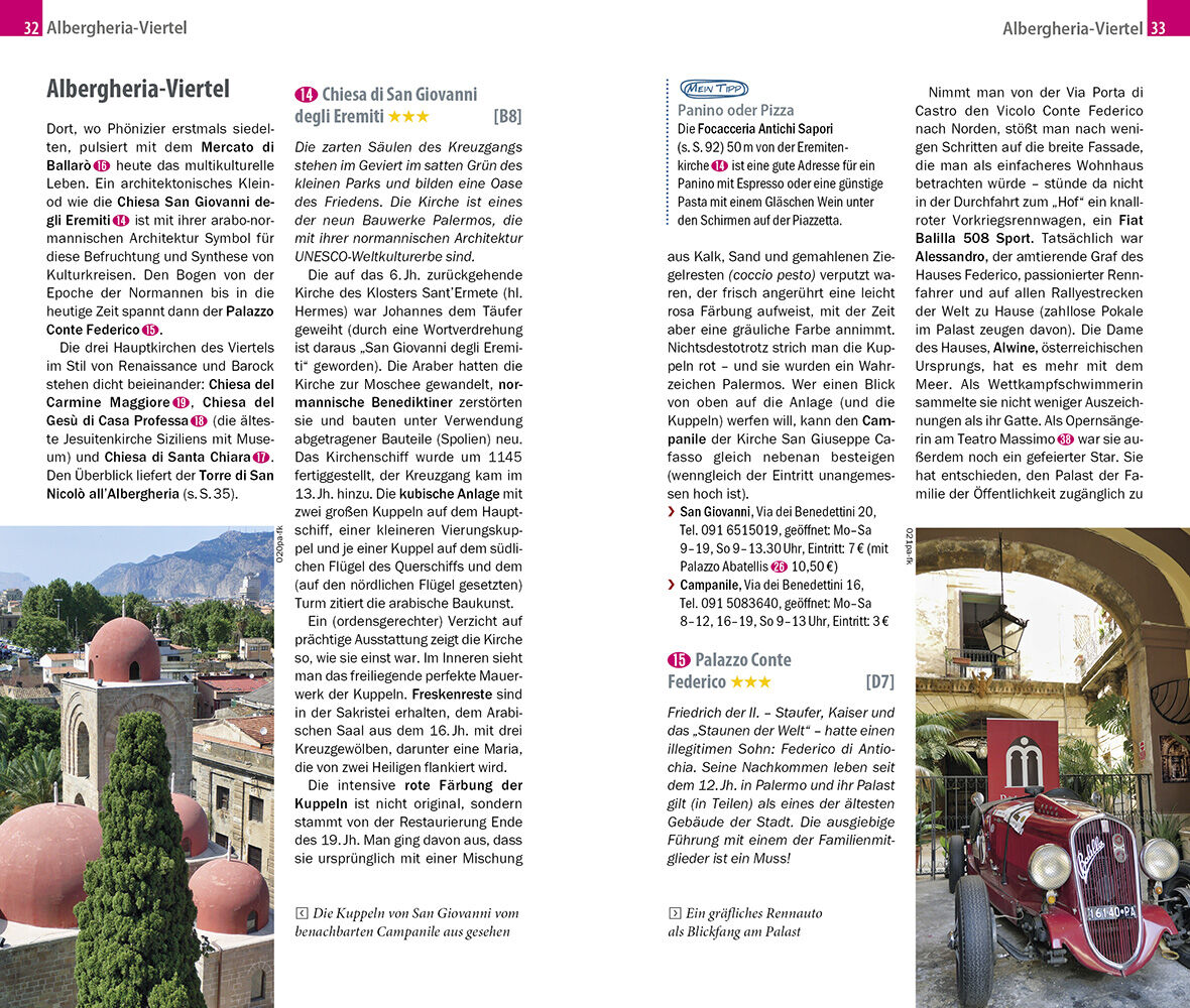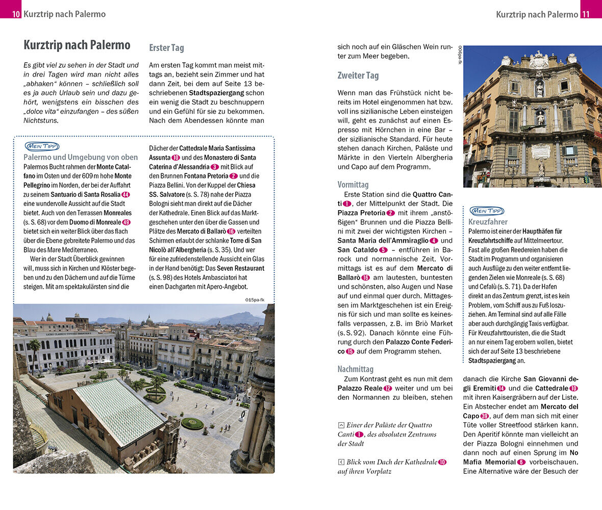 Palermo bezaubert mit seiner imposanten historischen Altstadt. Würde sich in den Gassen und auf den Märkten nicht das Leben tummeln, hätte man fast den Eindruck, die Zeit sei hier stehen geblieben. Die zahlreichen Bars und Trattorien mit ihren duftenden medit...