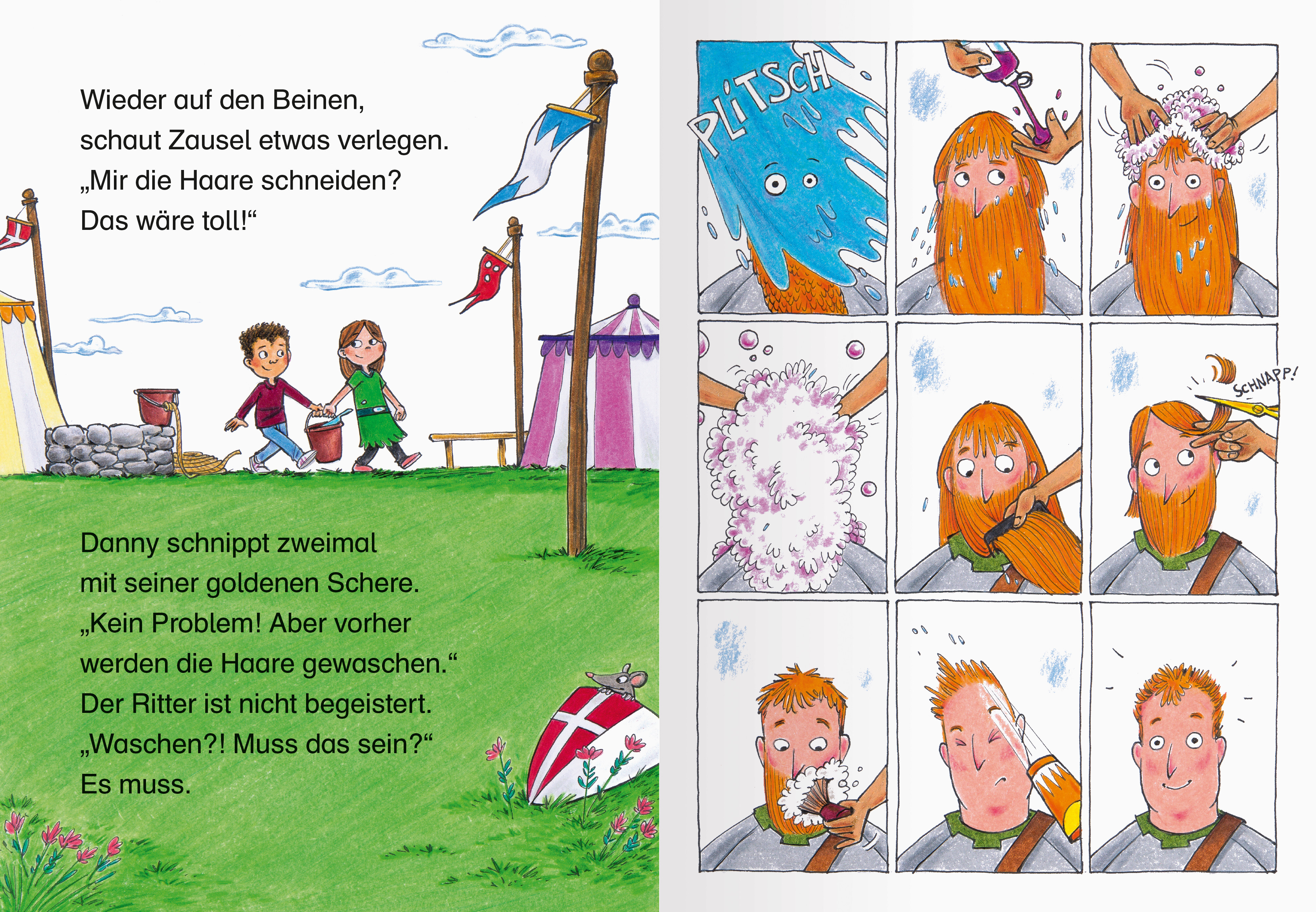 Endlich Haare schneiden! Mit einem Besuch in Dannys magischem Frisörsalon beginnt für Lila und Erik eine abenteuerliche Reise zu Drachen, Rittern und Einhörnern. Denn Danny ist ein ganz besonderer Frisör: Er beginnt erst mit seiner Arbeit, wenn ihm seine klein...