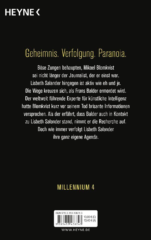 Mikael Blomkvist steht vor einer Entscheidung. Böse Zungen behaupten, er sei nicht länger der Journalist, der er einst war. Lisbeth Salander hingegen ist aktiv wie eh und je. Die Wege kreuzen sich, als Frans Balder, einer der weltweit führenden Experten für kü...
