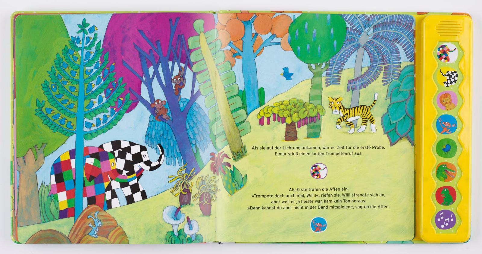 Bilderbuch mit tollen Tier-Geräuschen für Kinder ab 3 Jahren. Elmar hat viele Freunde, und jeder von ihnen kann ein lustiges Geräusch machen. Darum lädt Elmar sie alle zu einem großen Dschungelkonzert ein. Das macht Spaß! Mach mit und lass die Tiere in der Ges...
