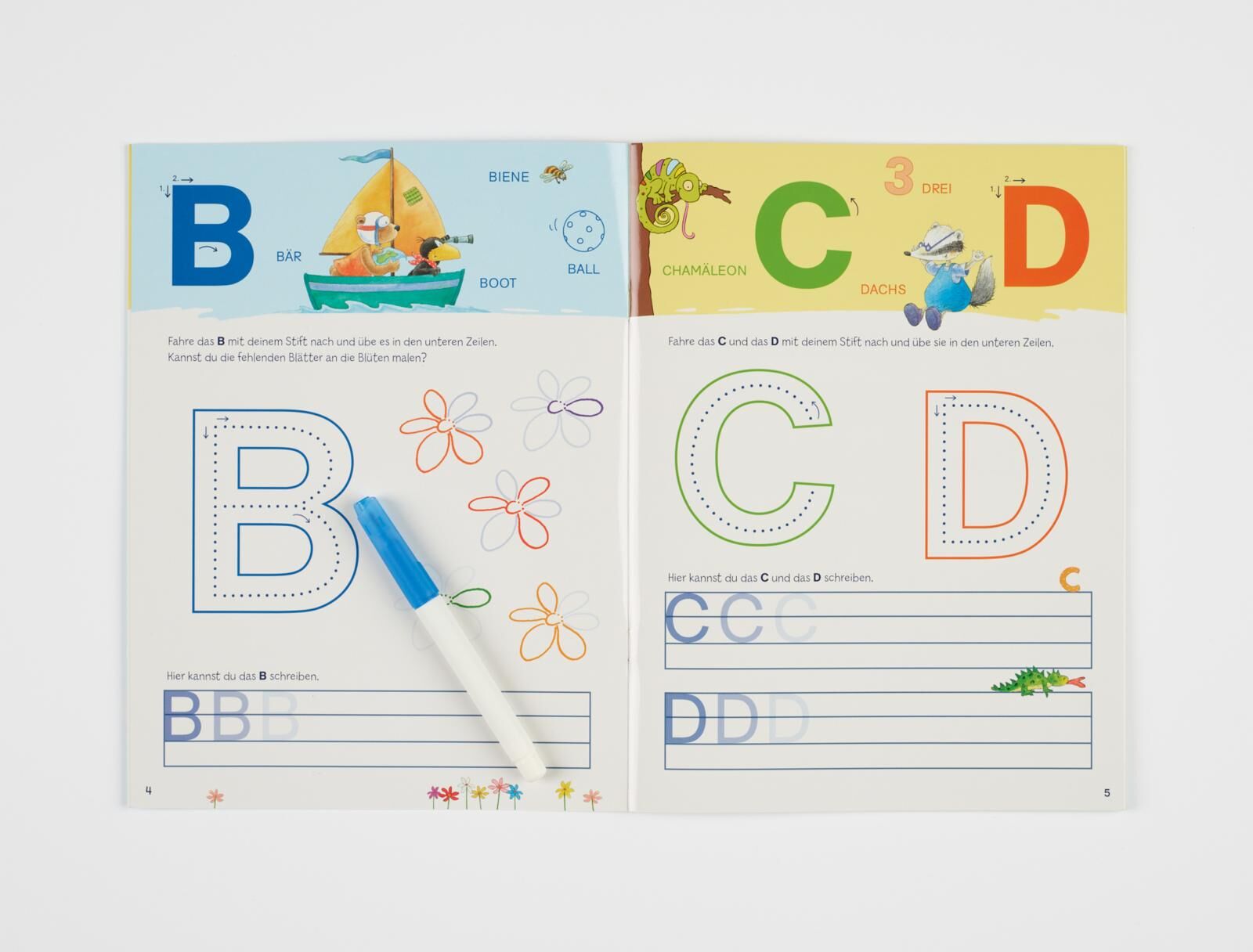 Nachfahren - wegwischen, verbinden - wegwischen ... ein tolles Beschäftigungsbuch vom kleinen Raben Socke für Kinder ab 4 Jahren. Der kleine Rabe Socke und seine Freunde zeigen Vorschulkindern die Buchstaben von A bis Z. Mit Buchstaben zum Nachfahren und Ausm...