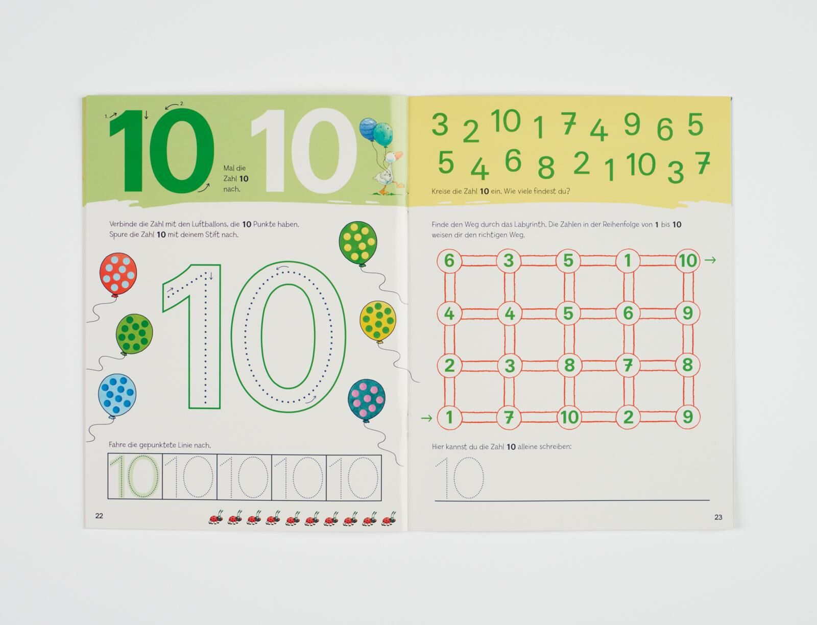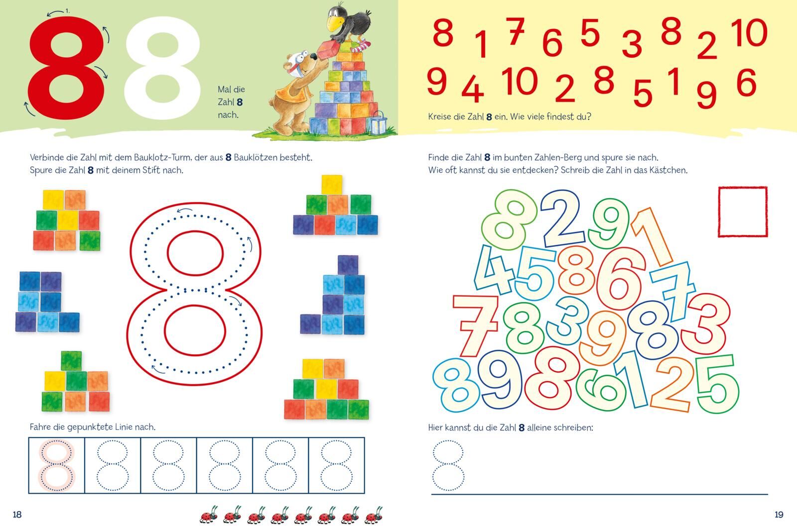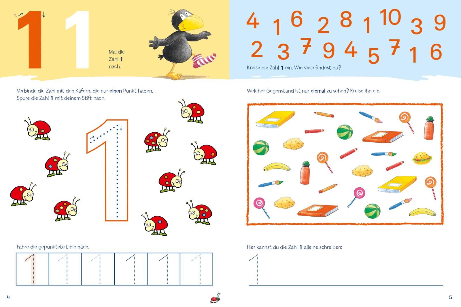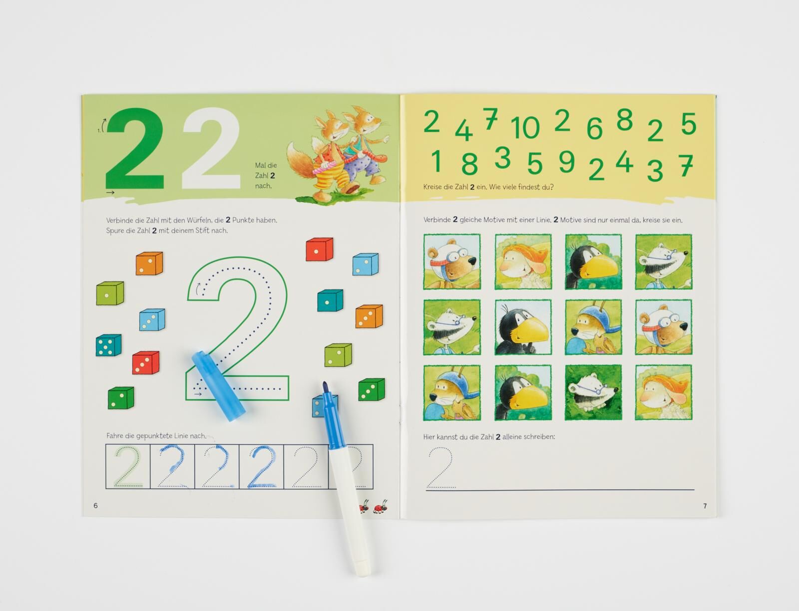 Nachfahren - wegwischen, einkreisen - wegwischen ... ein tolles Beschäftigungsbuch vom kleinen Raben Socke für Kinder ab 4 Jahren. Der kleine Rabe Socke und seine Freunde zeigen Vorschulkindern die Zahlen von 1 bis 10. Mit großen Zahlen zum Nachfahren und Aus...