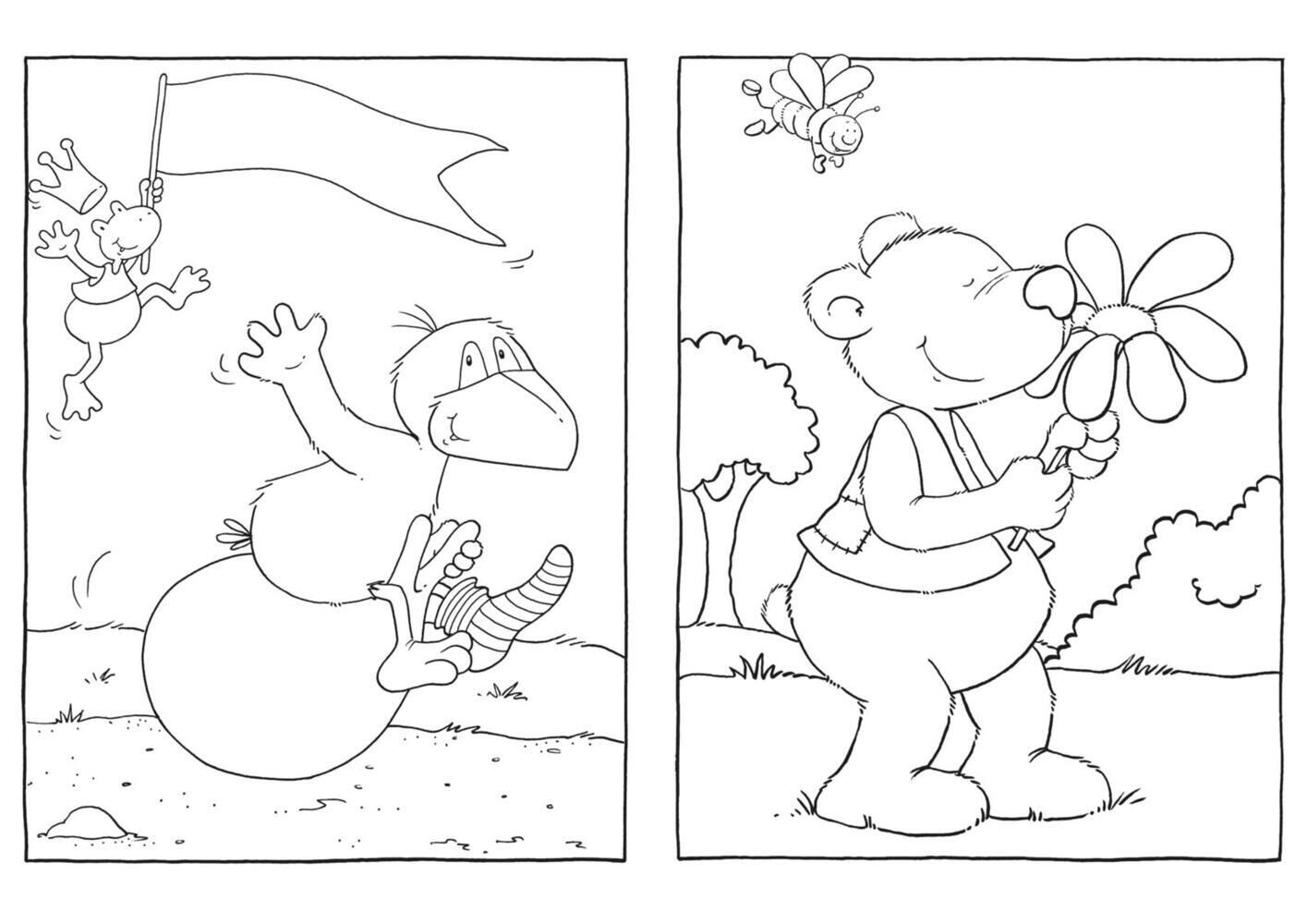 Keine Altersbeschränkung Tolle Ausmalbilder im Posterformat vom kleinen Raben Socke! Die extrastarken Konturen und großen Flächen eignen sich für Buntstifte, Wachsmalstifte und Wasserfarben. Der kleine Rabe Socke, Eddi-Bär, Wolle, Löffel oder Stulle - in diese...
