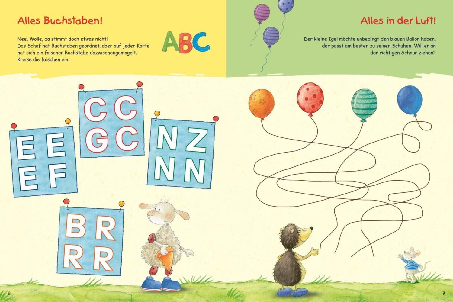 Spielerisch lernen mit dem kleinen Raben Socke - fröhliches Beschäftigungsheft für Kinder ab 4 Jahren! Finde alle Fehler im Bild, suche das fehlende Puzzleteil, entdecke den falschen Buchstaben in der Reihe, vergleiche und verbinde ... vielseitige Aufgaben un...