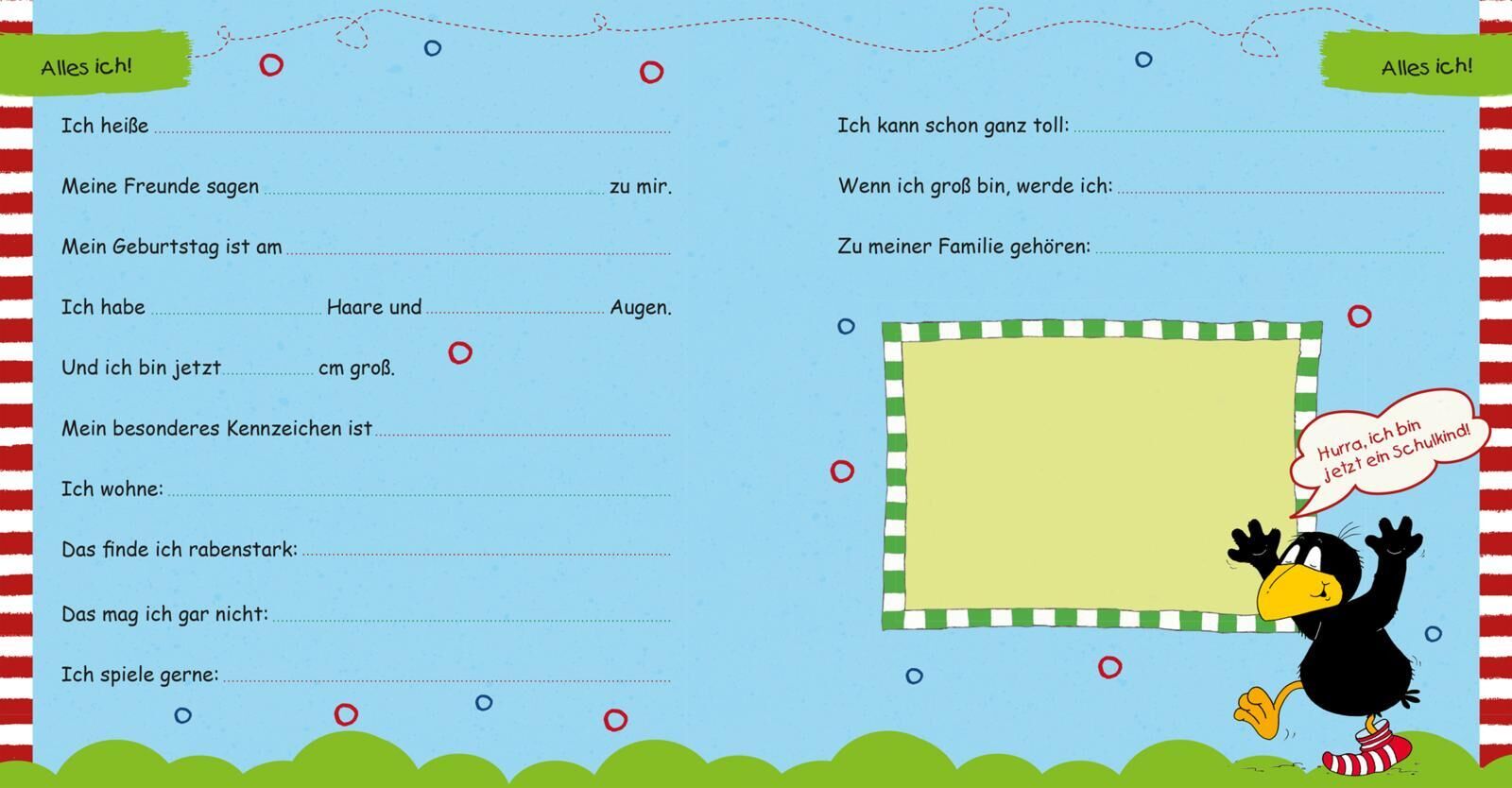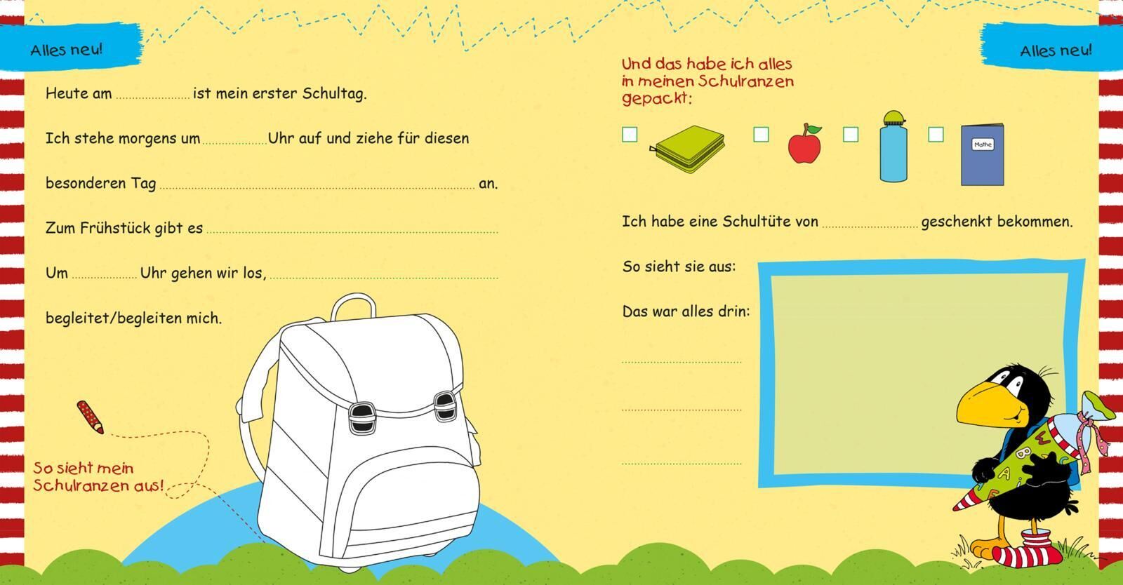 Dieses Erinnerungsalbum muss unbedingt mit in die Schultüte. Mit Buchstaben- und Zahlenvorlagen zum Ausmalen, vielen Platzhaltern für Erinnerungsfotos und natürlich ganz vielen Illustrationen von Rabe Socke. Alles zum Eintragen - das Erinnerungsalbum zum erste...