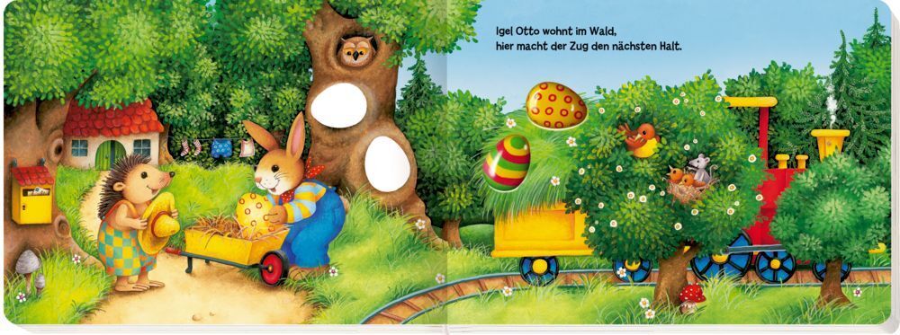 5,4,3, wer bekommt das nächste Ei? Ein liebevoll illustriertes Pappbilderbuch mit bunten Ostereiern und lustigen Reimen zum Mitzählen und Mitsprechen. Ein besonderer Osterspaß für die ganz Kleinen!