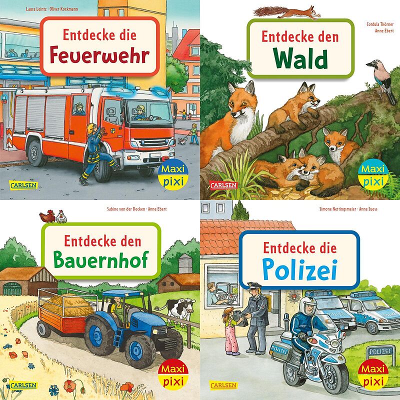 Mit Maxi Pixi die Welt entdecken - spannendes Sachwissen im praktischen Format für unterwegs Dieses Maxi-Pixi-Set enthält gleich vier spannende Sachbücher: Komm mit auf den Bauernhof, lerne den Wald kennen und begleite Feuerwehr und Polizei bei ihren spannend...