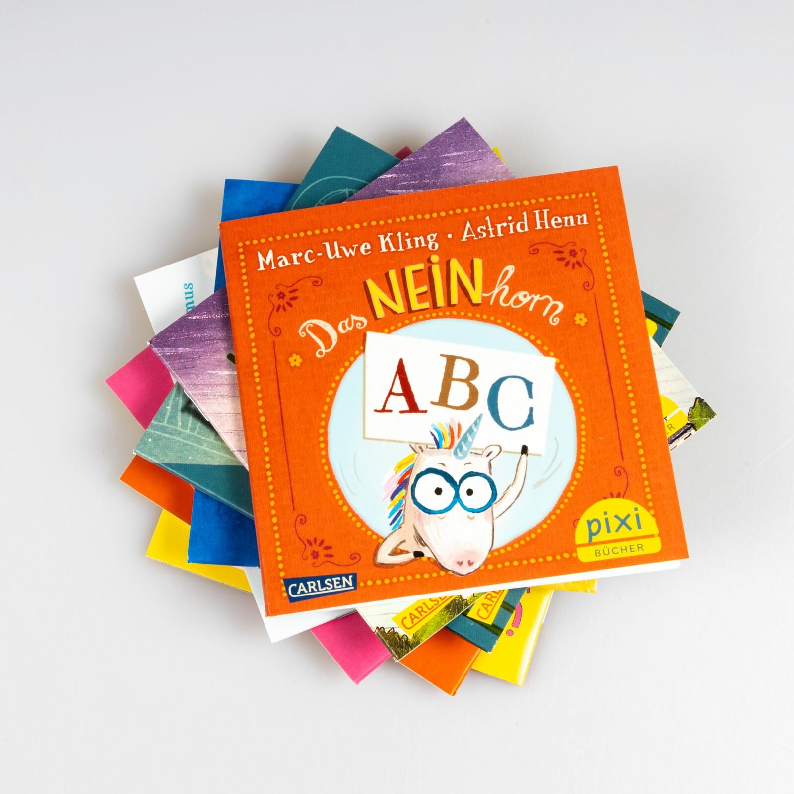 Acht Größen des Kinder- und Jugendbuchs haben Pixi zum 70-jährigen Jubiläum eine Geschichte geschrieben - und acht namhafte Bilderbuch-Illustratorinnen haben sie bebildert. Darunter sind Erfolgsteams wie Marc-Uwe Kling und Astrid Henn vom "Neinhorn"...