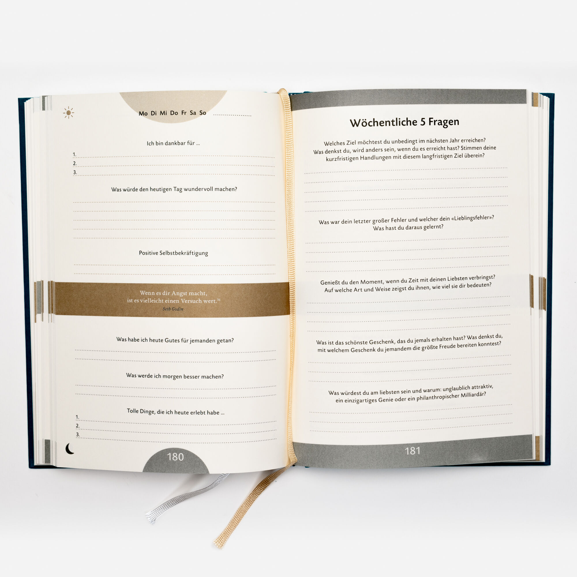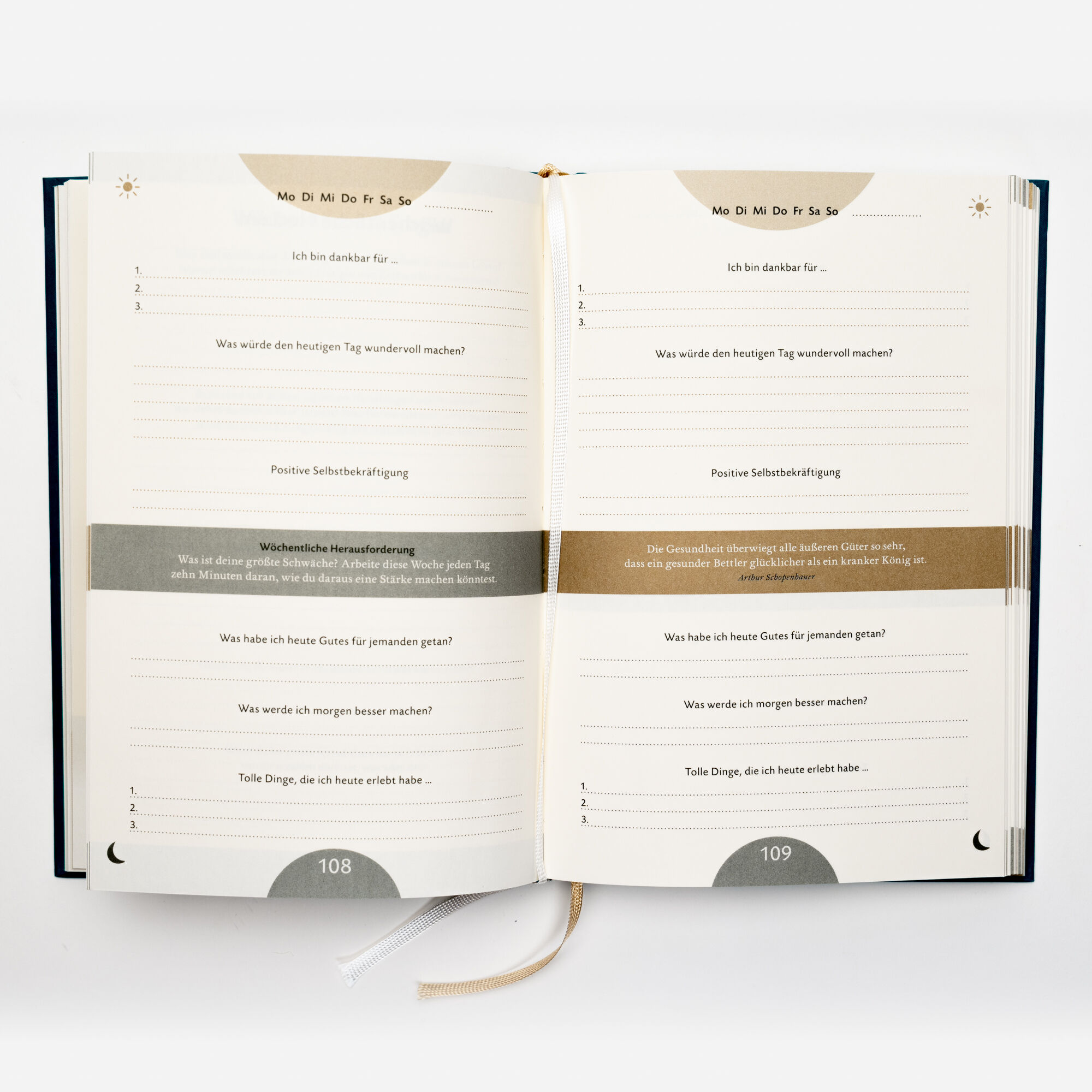 Wer ein gutes Leben will, braucht gute Gedanken - und genau das trainierst du mit diesem Tagebuch. Anstatt auf das zu schauen, was fehlt oder nicht passt, hilft es dir, dich auf Fortschritt und das Gute zu fokussieren. In jeweils 3 Minuten am Morgen und am Ab...