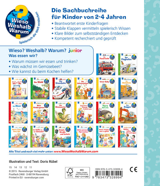 Ravensburger 32899 Wieso? Weshalb? Warum? junior, Band 53: Was essen wir? WWW-junior (ab 01/06) Guten Appetit! Am Esstisch sitzt meist die ganze Familie zusammen. Da wird genascht und gekleckert, aber auch getrotzt und gemeckert. Denn Geschmäcker sind nun mal ...