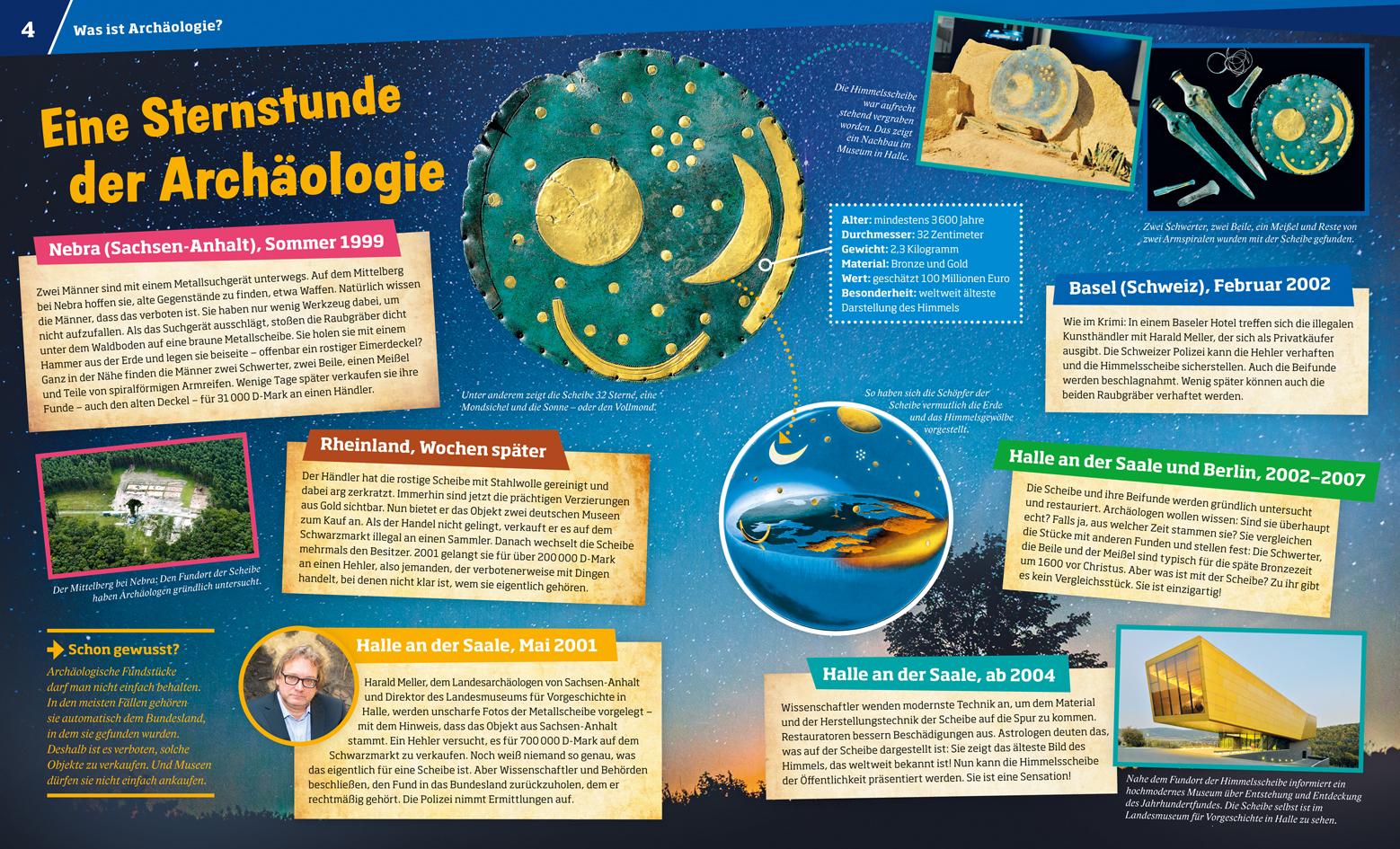 Was sagen uns Tempel und Götter, Schriften und Zeichen, die Himmelsscheibe von Nebra? Archäologie ist Spannung pur! Stein für Stein führt sie uns das Leben von der Steinzeit über die Antike bis in die Neuzeit vor Augen. WAS IST WAS interviewt einen Archäologen...