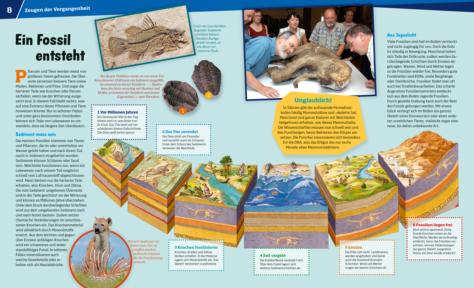 Seit mindestens dreieinhalb Milliarden Jahren gibt es Leben auf unserem Planeten. Von den ersten Einzellern über Ammoniten und Dinosaurierknochen bis hin zum Menschen zeichnet der Band "Fossilien" die Entwicklung des Lebens nach. So manche Lebewesen ...
