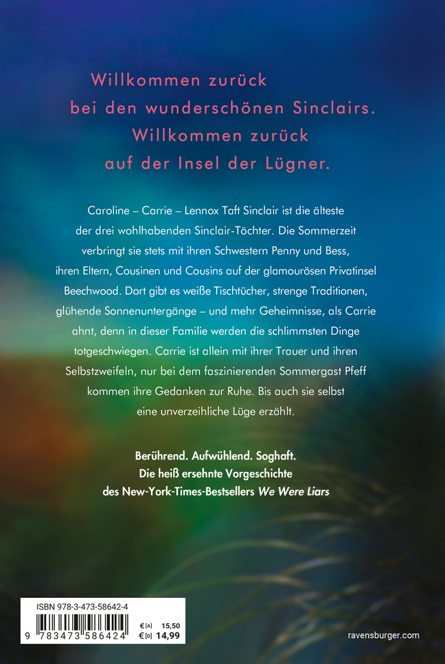 Die heiß ersehnte Vorgeschichte des New-York-Times-Bestseller WE WERE LIARS! Caroline - Carrie - Lennox Taft Sinclair ist die älteste der drei wohlhabenden Sinclair-Töchter. Die Sommerzeit verbringt sie stets mit ihren Eltern und Schwestern auf einer Privatins...