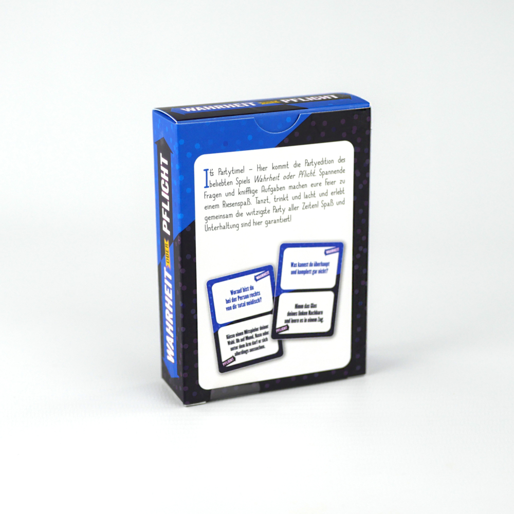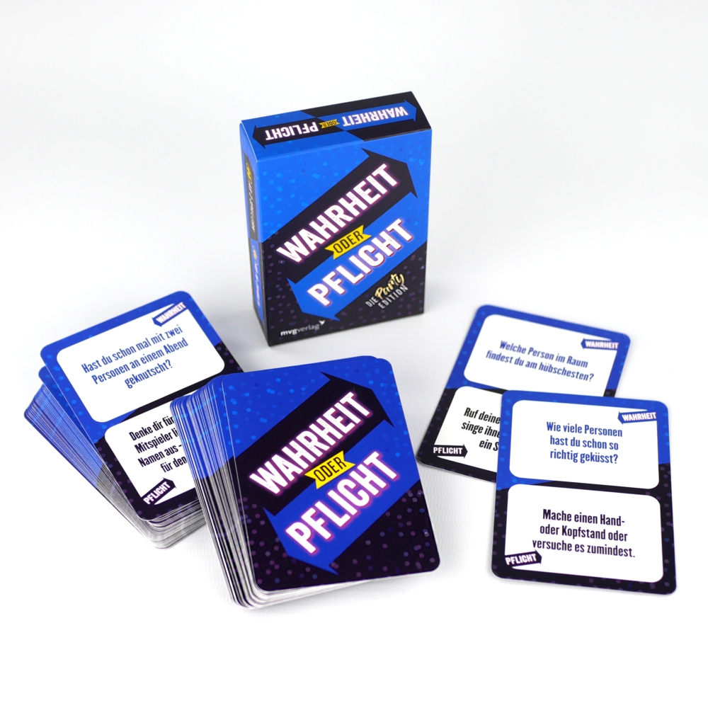 It s Partytime! Hier kommt die Partyedition des beliebten Spiels Wahrheit oder Pflicht. Spannende Fragen und knifflige Aufgaben machen eure Feier zu einem Riesenspaß. Tanzt, trinkt und lacht und erlebt gemeinsam die witzigste Party aller Zeiten! Spaß und Unte...