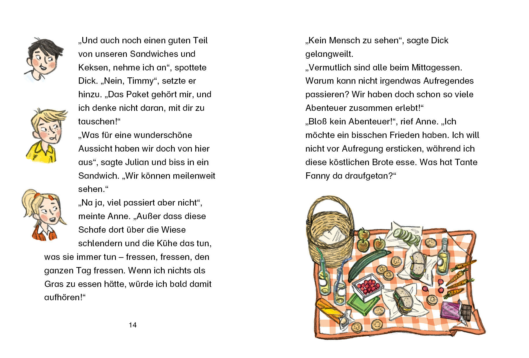 Rettet das Rennpferd! Die Fünf Freunde treffen sich zu einem friedlichen Picknick. So friedlich, dass es fast schon langweilig ist!, findet Dick. Doch als er durch sein Fernglas blickt, macht er eine aufregende Entdeckung: Die Rennpferde von Lord Daniron galop...