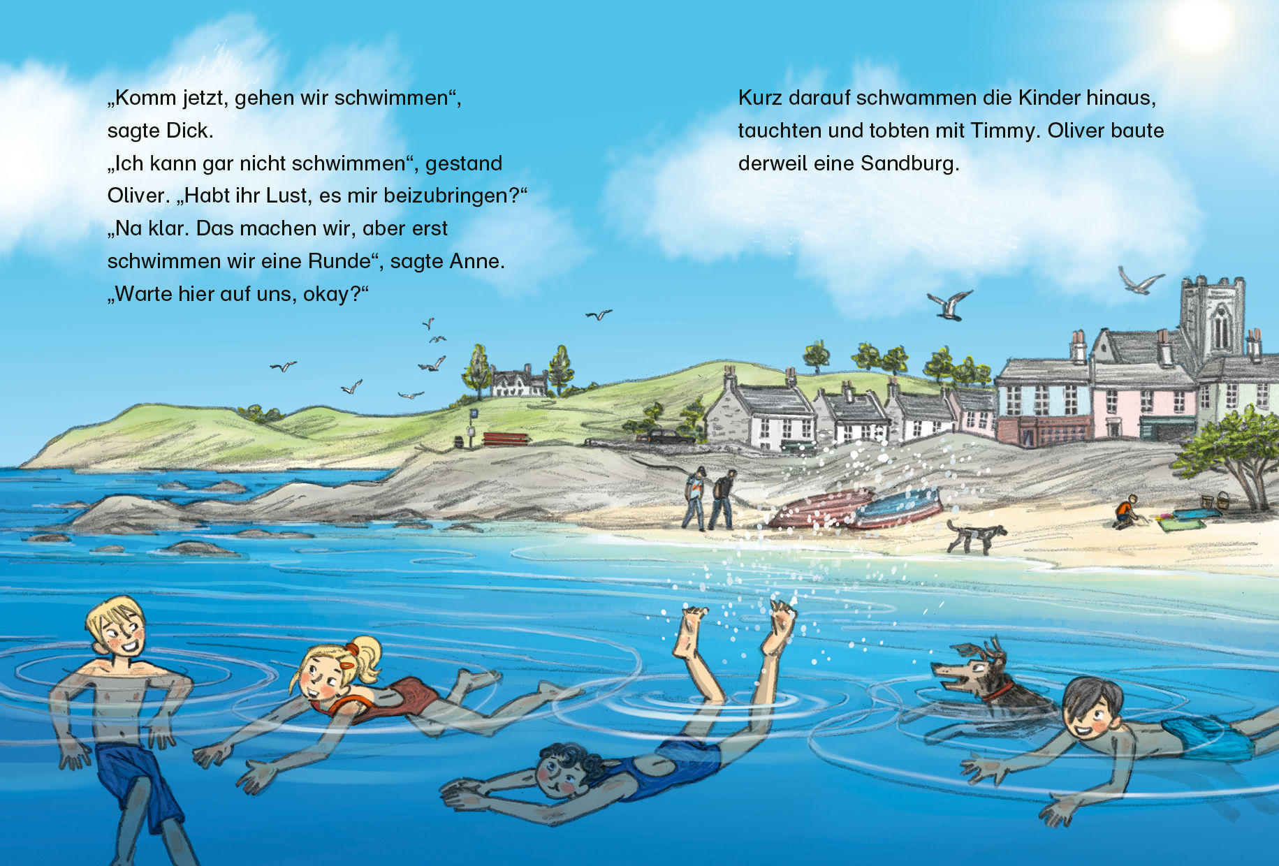 Gefährliche Ferien Die Fünf Freunde freuen sich auf ein sonniges Picknick am Strand. Dort finden sie schnell Freunde: Timmy tobt mit einem großen Mischlingshund herum, Dick, Julian, George und Anne geben dem kleinen Oliver Schwimmunterricht. Doch das harmlose ...