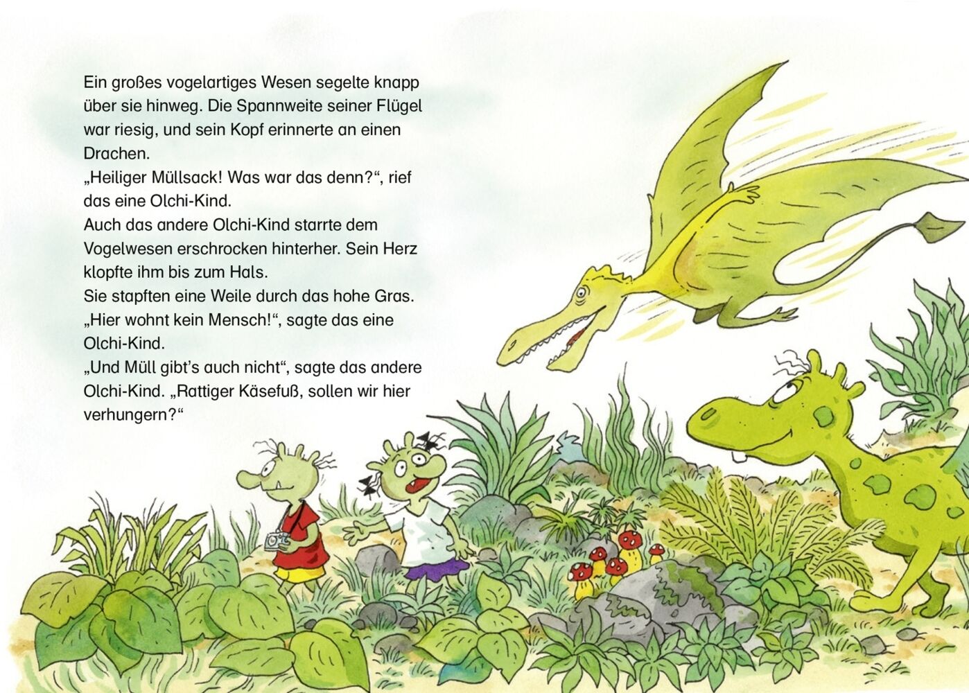 In "Die Olchis retten das Dino-Baby", einer Geschichte, die perfekt abgestimmt auf die dritte Lesestufe ist, entführt die beliebte, schmuddelliebende Olchi-Familie junge Leser*innen in ein aufregendes Urzeit-Abenteuer. Dank Professor Brauseweins Zeitmaschine landen die Olchi-Kinder unvermittelt in einer Epoche, in der Dinosaurier die Erde beherrschen. Dort treffen sie auf ein verlorenes Dino-Baby, das verzweifelt nach seiner Mutter sucht. Sofort sind die Olchis zur Stelle, um zu helfen, doch sie stellen schnell fest, dass das Leben in der Urzeit voller Gefahren steckt. Gefährliche Echsen und ein hungriger Flugsaurier bedrohen den kleinen Dinosaurier. Während sie gemeinsam versuchen, das Dino-Baby in Sicherheit zu bringen, tickt die Uhr: Professor Brausewein könnte sie jeden Moment zurück ins gegenwärtige Schmuddelfing holen.