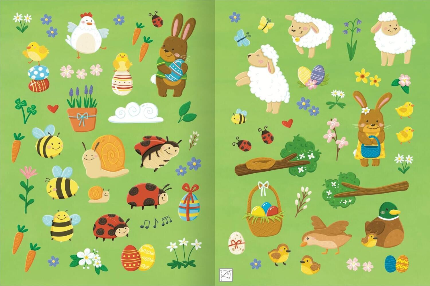 Für alle kleinen Frühlingsfans Ob im Garten, im Hühnerstall oder auf der Frühlingswiese - überall gibt es bunte Eier und Tierkinder zu entdecken. Wähle aus über 250 Aufklebern und erwecke die bunten Szenen mit den niedlichen Osterhasen, Lämmern und Blümchen z...