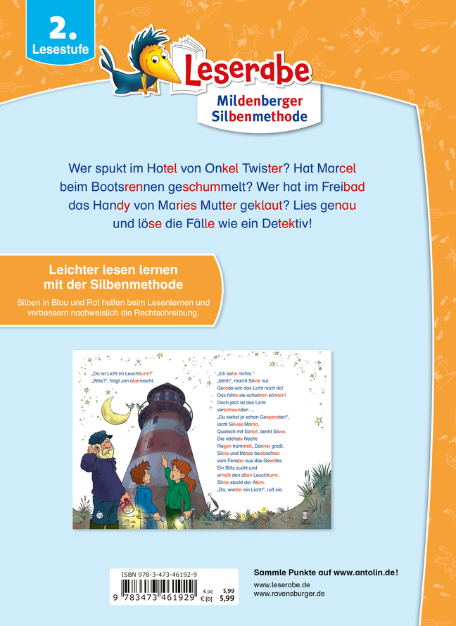 Lesen lernen wie im Flug! Wer hat den Schatz im Leuchtturm versteckt? Wo ist das Handy von Maries Mutter? Und wer hat die Pfadfinderkasse geklaut? Fenja und Marie sind dem Dieb auf der Spur und Fynn begibt sich auf Gespensterjagd. Jede Menge spannende Krimis z...