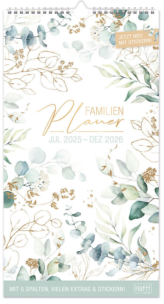 Familienplaner mit fünf Spalten für 18 Monate, Wandkalender mit Wire-O und Aufhänger, immer ein Monat pro Blatt, Laufzeit Juli 2025 bis Dezember 2026, farblich unterteilte Wochen für schnelle Orientierung, mit Feiertagen und Schulferienterminen, Stundenplänen ...