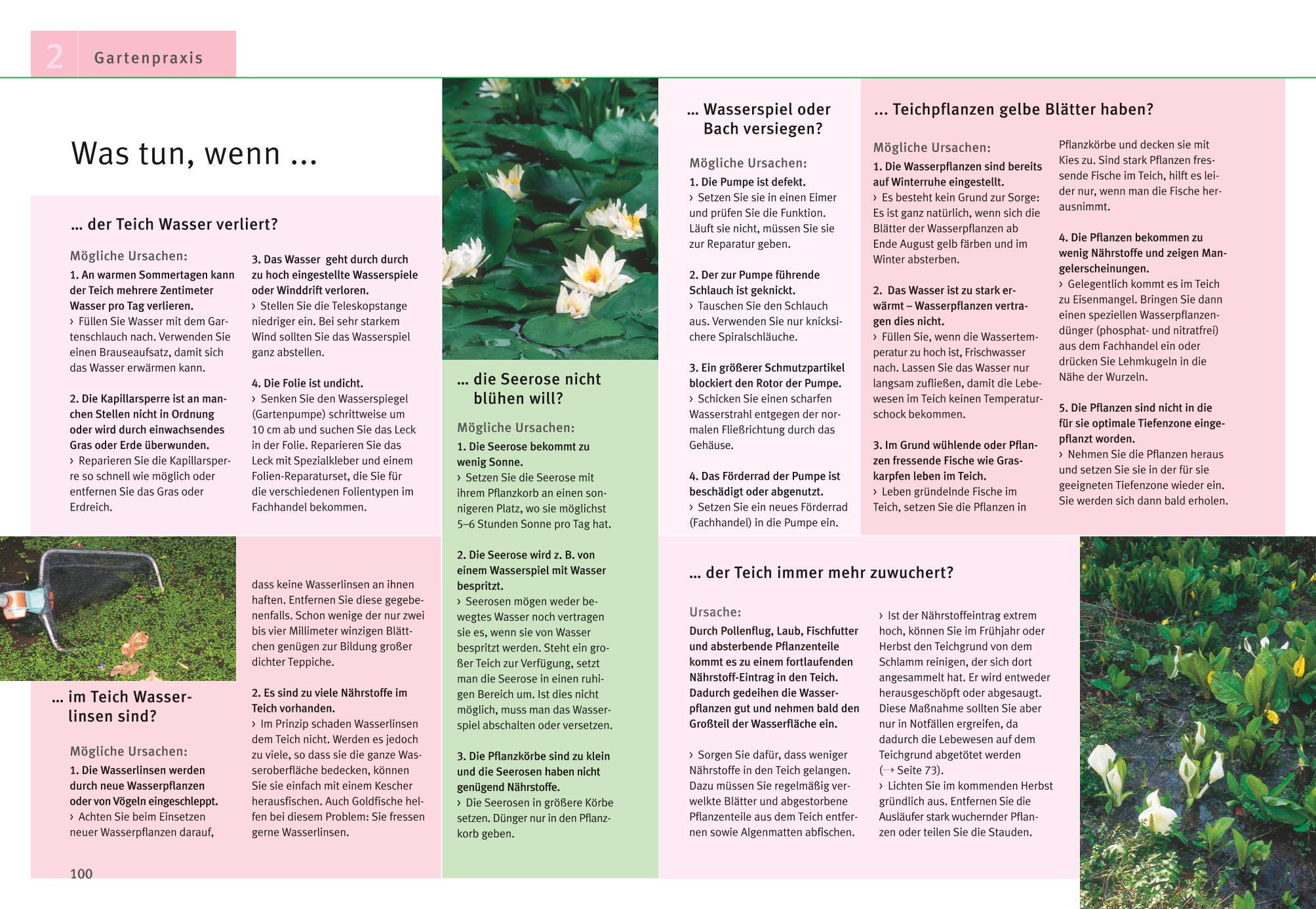 Schritt für Schritt zum eigenen Wassergarten Ein Teich macht die Idylle im Garten perfekt. Soll es ein Folien- oder ein Fertigteich sein, ein kleiner Bachlauf oder ein Miniteich? Bevor man zur Tat schreitet, gibt der Ratgeber "Gartenteiche" viele Tip...