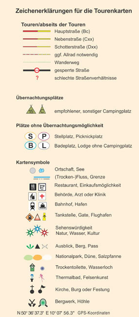 TOURENKARTENKnapp 9000 km Touren durch ganz Namibia. Auf den Karten sind die Touren deutlich mit roter Farbe markiert. Camps, Sehenswürdigkeiten aber auch Tankstellen; Einkaufsmöglichkeiten oder Restaurants finden Sie als Piktogramm auf der Karte wieder. TREFF...