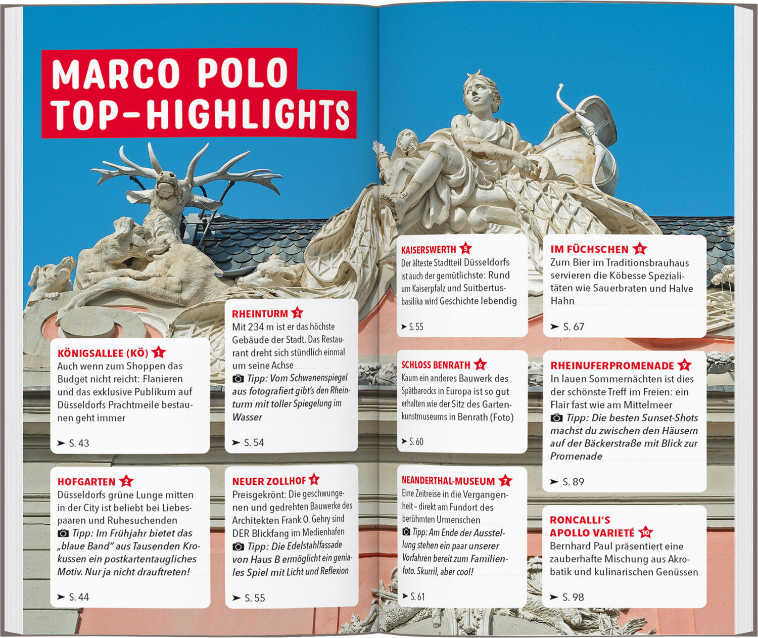 Urlaub in der schönsten Stadt am Rhein mit dem MARCO POLO Reiseführer Düsseldorf "C'est petit Paris!", soll Napoleon einst beim Anblick Düsseldorfs ausgerufen haben. Historisch belegt ist das zwar nicht, aber die Düsseldorfer lieben ihre Stadt ...