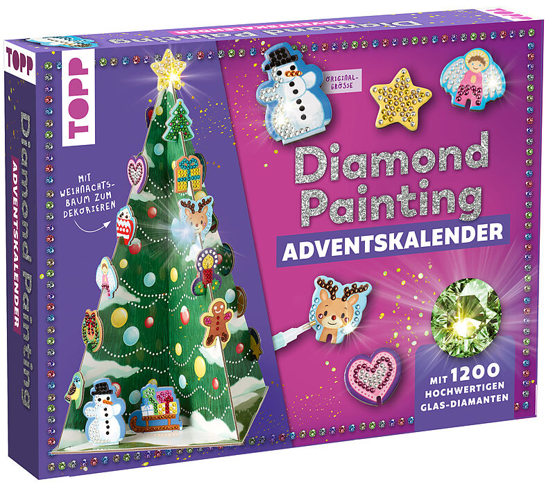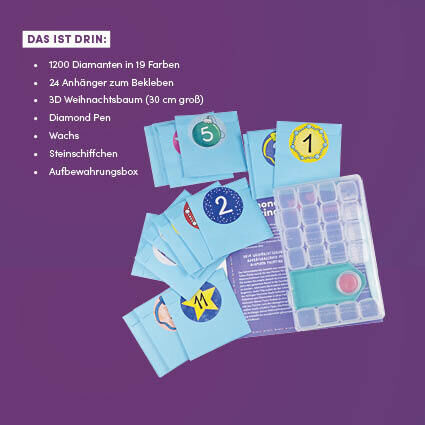 Das Trendthema Diamond Painting als Adventskalender. Jeden Tag ein neuer Anhänger zum Gestalten mit 3D-Tannenbaum Baum aufstellen und losglitzern! Mit diesem Adventskalender kannst du Tag für Tag deinen 3D-Weihnachtsbaum dekorieren. Hinter jedem Türchen warte...