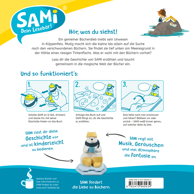 Erlebe mit SAMi ein Lese-Abenteuer! Neuerdings verschwinden immer mehr Bücher aus Idas Heimatort Klippenfels. Ida hat so viele Abenteuergeschichten gelesen, dass sie beschließt, den gemeinen Bücherdieb zu suchen. In einer Höhle am Meeresgrund findet sie alle B...