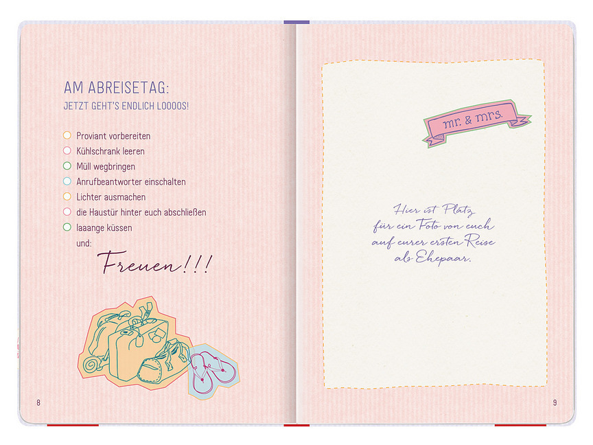 Illustriertes Reisetagebuch für die Flitterwochen Illustriertes Reisetagebuch für die Flitterwochen Oft starten frisch Vermählte mit einer Hochzeitsreise in ihre gemeinsame Zukunft. Die Flitterwochen sollen ein ganz besonderes Erlebnis sein, an das sich Paare ...