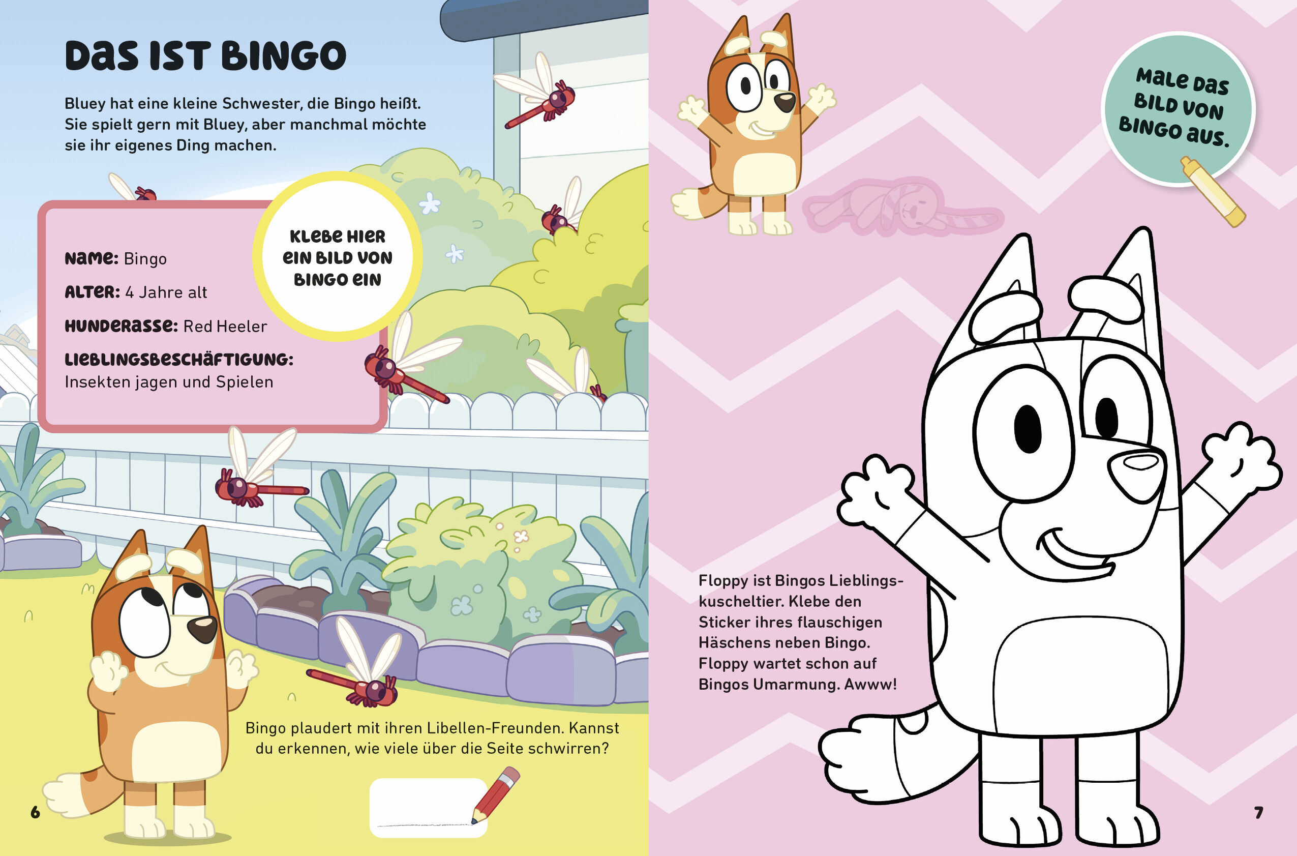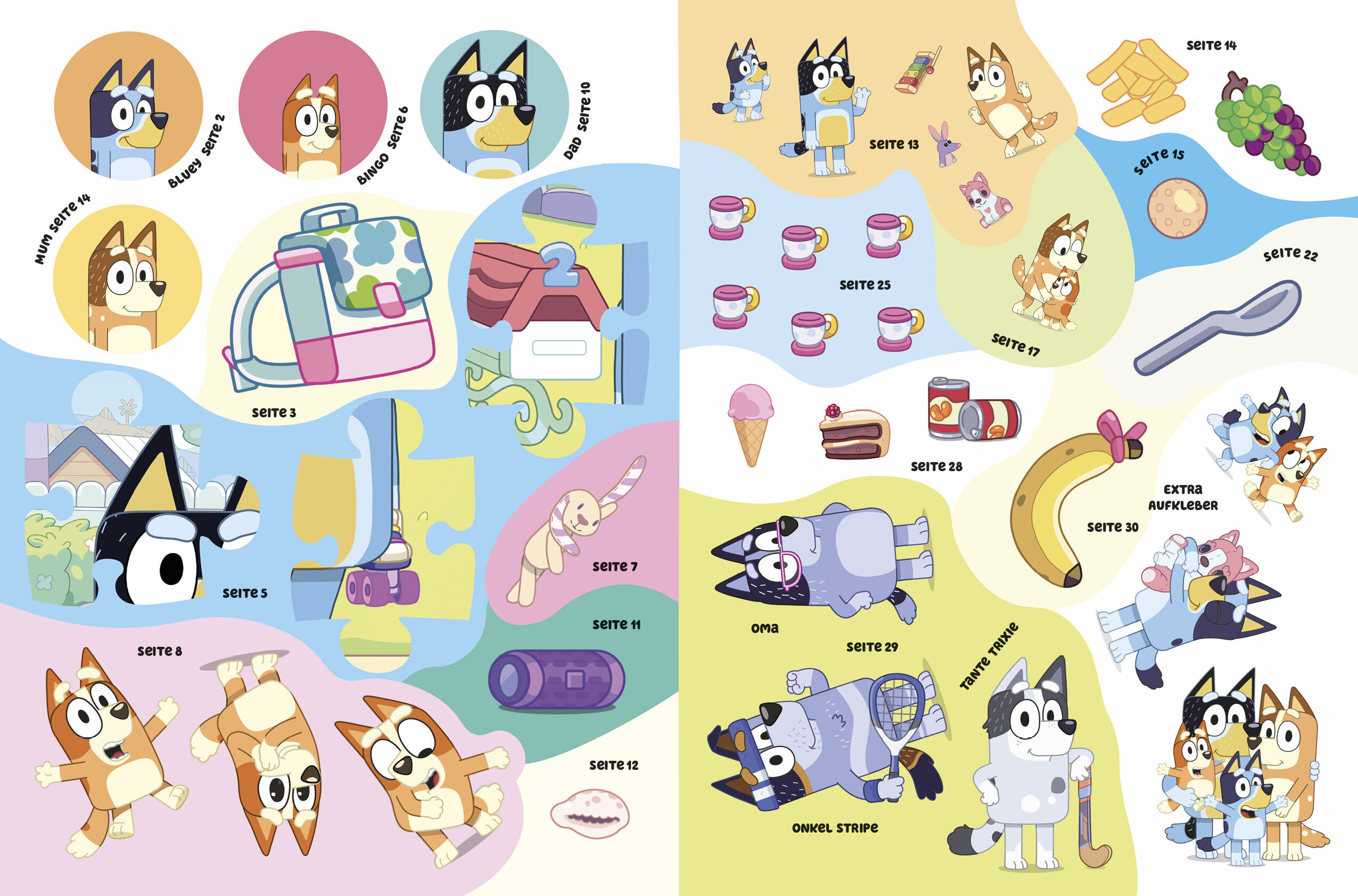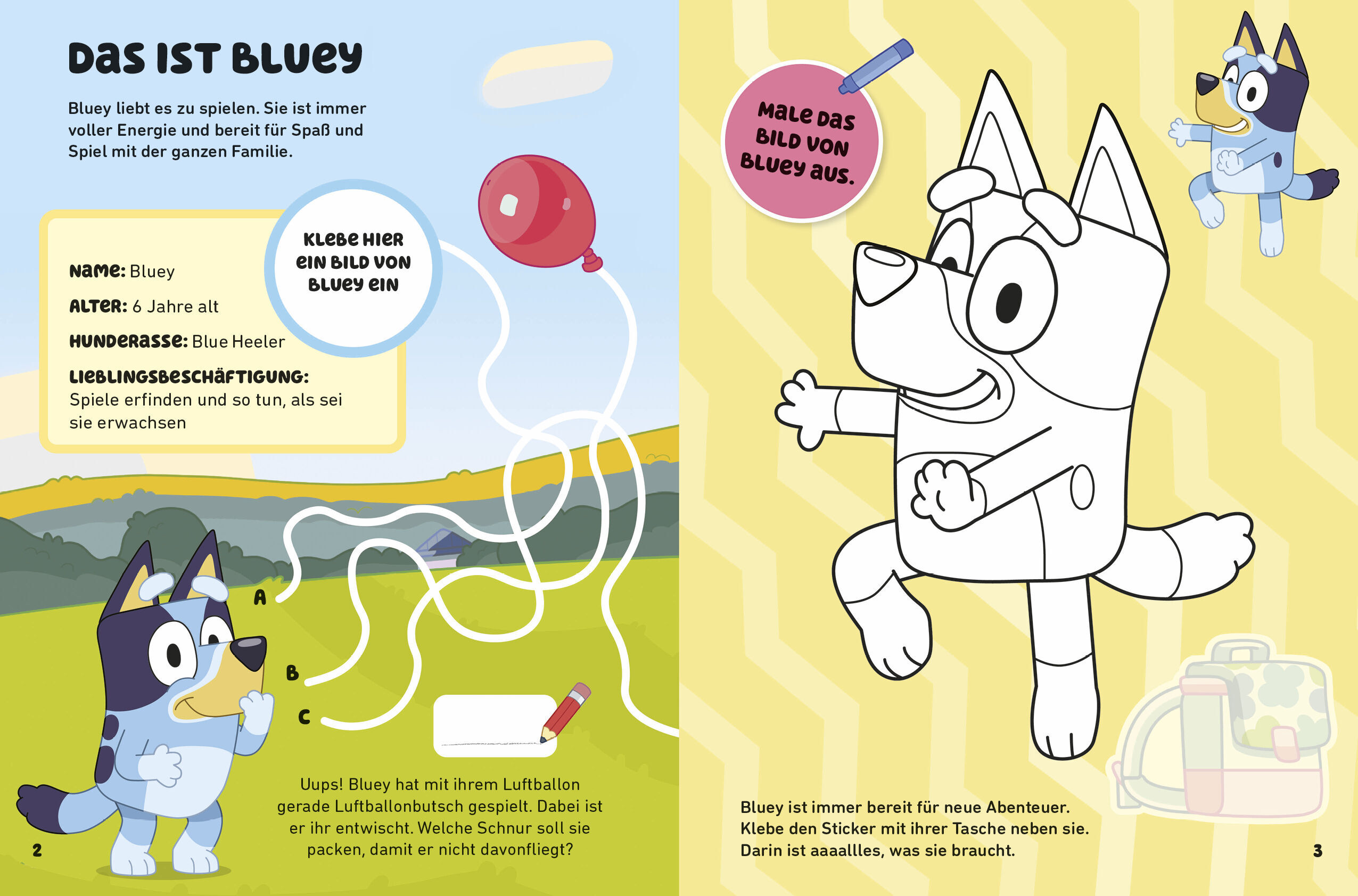 Sticker- und Rätselspaß mit Bluey und Bingo! »Hier kommt Bluey!« Mit diesem Sticker- und Beschäftigungsheft kann man Bluey, ihre Schwester Bingo, Mum, Dad und den Rest der Familie kennenlernen und mit ihnen spielen. Freunde aus der Nachbarschaft sind auch dabe...