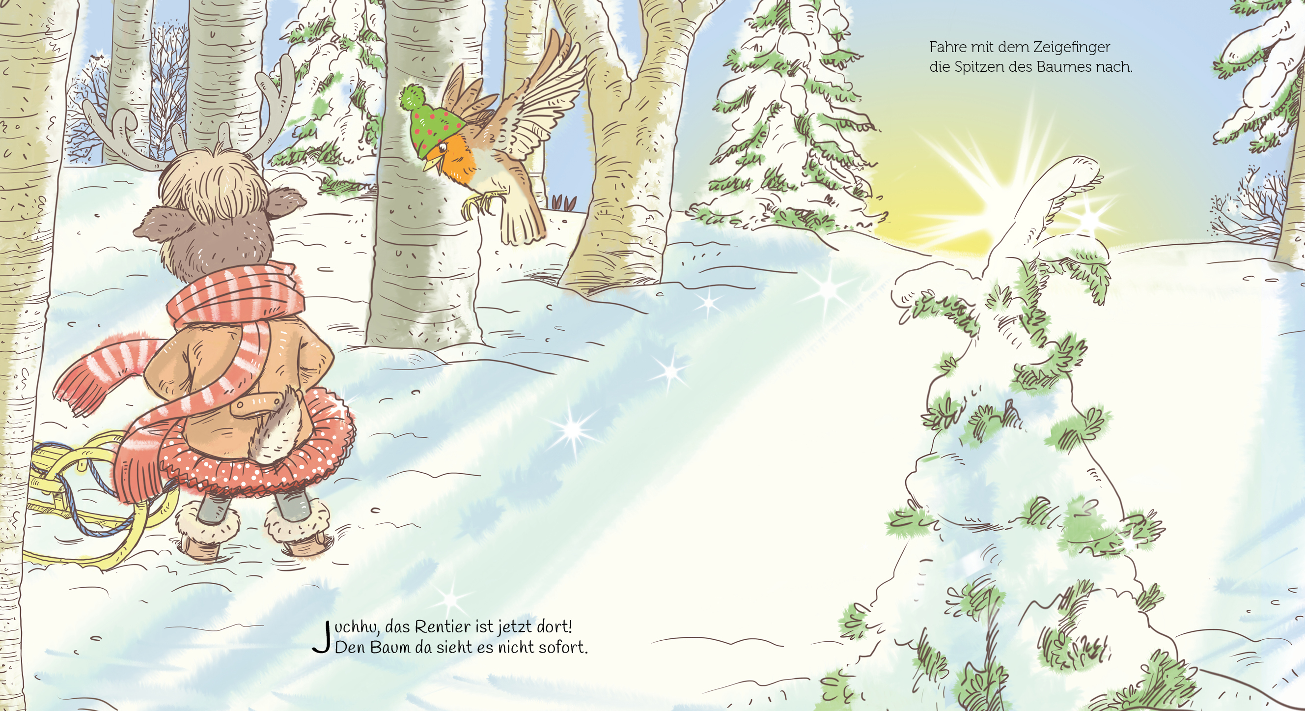 Das Rentier träumt im Schlaf vom allerschönsten Weihnachtsbaum. Der will am Tag dann natürlich auch gefunden werden! Dieses liebevoll illustrierte Bilderbuch lässt sowohl erwachsene Vorleser als auch kleine Zuhörer an der Suche nach dem hübschesten Baum teilha...
