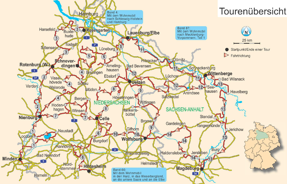 TOURENKARTENPräzise Karten führen zu allen im Buch beschriebenen Zielen. Stadtpläne und Detailkarten vervollständigen die Orientierung. Die 14 sorgfältig recherchierten Touren führen über rund 2100 Kilometer durch die Lüneburger Heide und die Elbtalaue.NATUR E...TOURENKARTENPräzise Karten führen zu allen im Buch beschriebenen Zielen. Stadtpläne und Detailkarten vervollständigen die Orientierung. Die 14 sorgfältig recherchierten Touren führen über rund 2100 Kilometer durch die Lüneburger Heide und die Elbtalaue.NATUR ERLEBEN, WANDERN; RAD FAHRENQuellen, Flüsse, Seen, Wandertouren, Aussichtspunkte. Die großen und die weniger großen Natursehenswürdigkeiten für konditionsstarke Wanderer, Radler und Spaziergänger die auch eine längere Tour entlang der Flüsse und durch die Heidelandschaften nicht scheuen.KULTURSCHÄTZE, STÄDTERomantische Altstädte, Festungen, Burgen, Schlösser, Kirchen, Museen. Die bedeutendsten Bauwerke in der Lüneburger Heide, dem Wendland, der Altmark und in der Elbtalaue im historischen Zusammenhang für geschichtsinteressierte und kulturbeflissene.WASSER ERLEBEN, BADENBadeseen, Freibäder, Thermen, Flüsse. Für Badegäste, Wellnessliebhaber, Erholungssuchende, Wassersportler und Angler. Die Vielfalt der Seen ist überraschend groß und auch an den Flüssen sind Badestrände zu finden. Da ist für jeden etwas dabei.WOMO-SERVICE189 Stell- und Übernachtungsplätze mit ausführlichen Beschreibungen, Adressen und GPS-Koordinaten. Viele weitere Adressen und GPS Koordinaten, die zu den Parkplätzen ausgesuchter Reiseziel führen, auf denen eine Übernachtung nicht möglich ist.