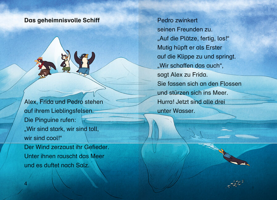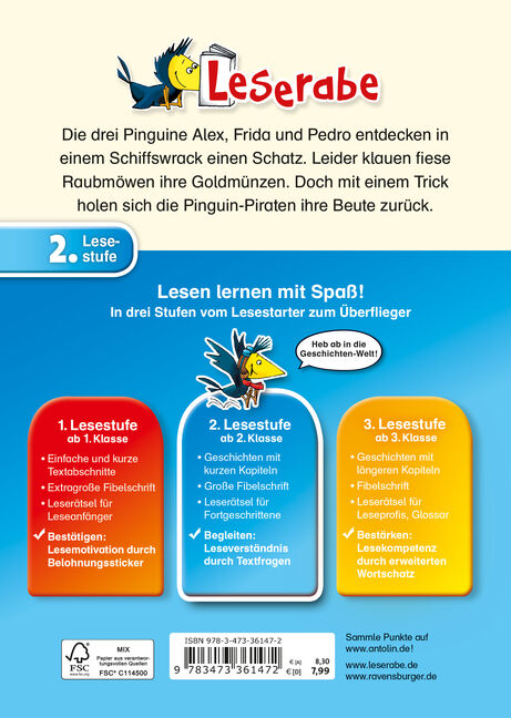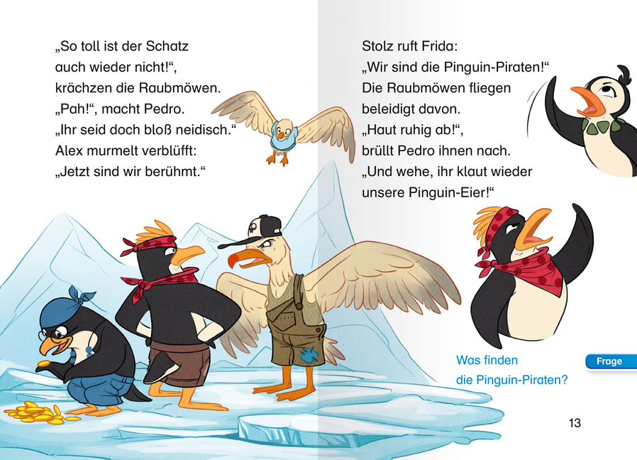 Die drei Pinguinfreunde Alex, Frida und Pedro entdecken unter Wasser einen Schatz. Leider klauen fiese Raubmöwen ihre Goldmünzen. Doch mit einem Trick holen sich die Pinguin-Piraten ihre Beute zurück. Eine Abenteuergeschichte für Erstleser ab Klasse 2. Lesen l...