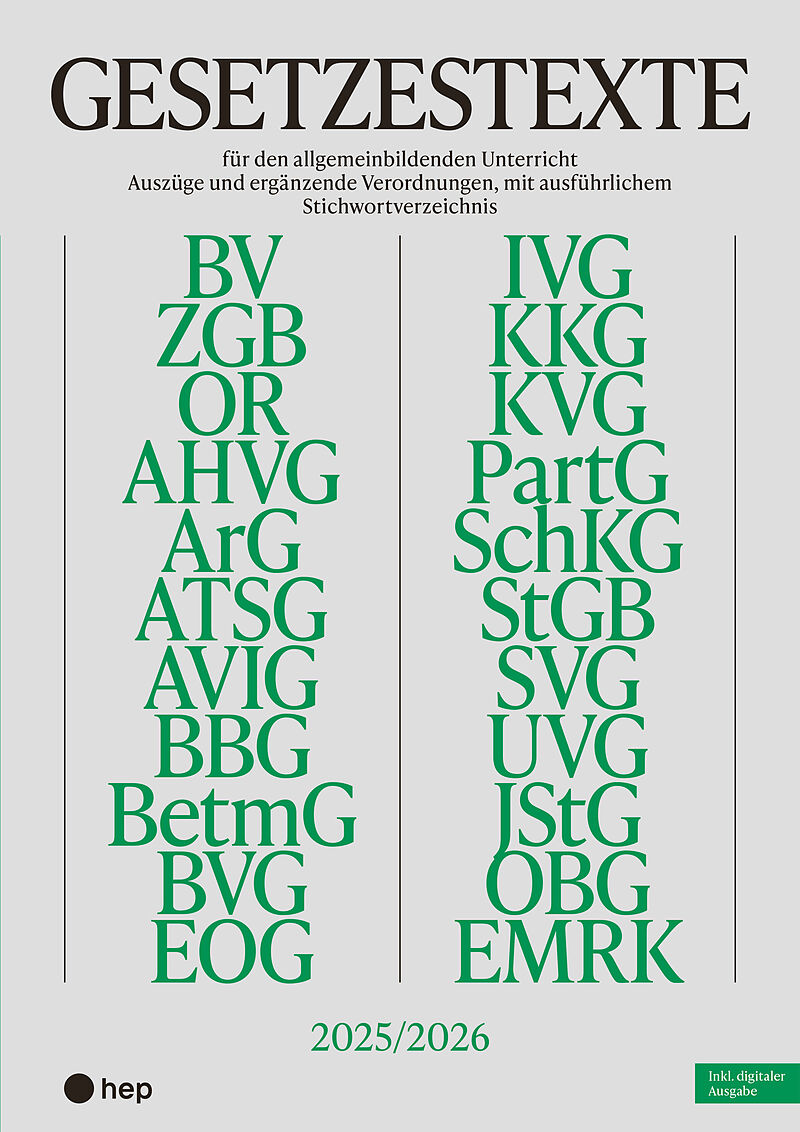 Die vorliegende Gesetzessammlung umfasst die wichtigsten Rechtsquellen, die die Lernenden gemäss dem Rahmenlehrplan für den allgemeinbildenden Unterricht benötigen, um den Umgang mit Gesetzestexten zu üben. Sie wird jedes Jahr aktualisiert. Das ausführliche St...