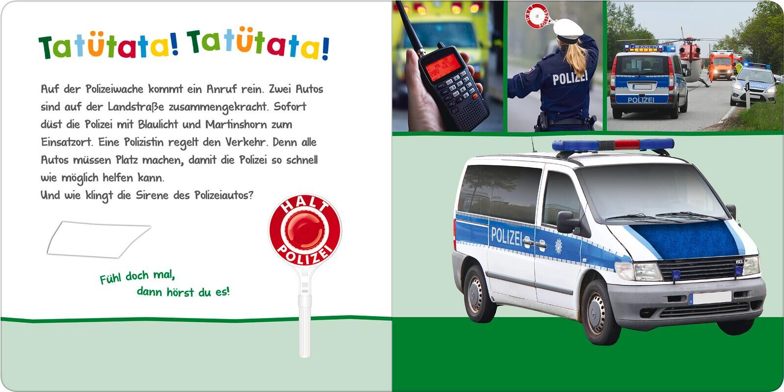 Hör mal rein, wer kann das sein? - Bei der Polizei Tönendes Buch Klappentext Wie klingt das Polizeiauto? Tatütata! Tatütata! Die Polizei düst mit Blaulicht und Martinshorn zum nächsten Einsatz. Um schneller am Unfallort zu sein, schlängeln sich ein paar Polizi...
