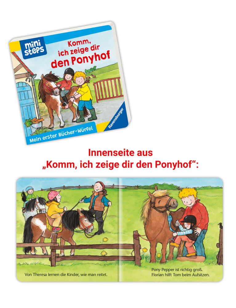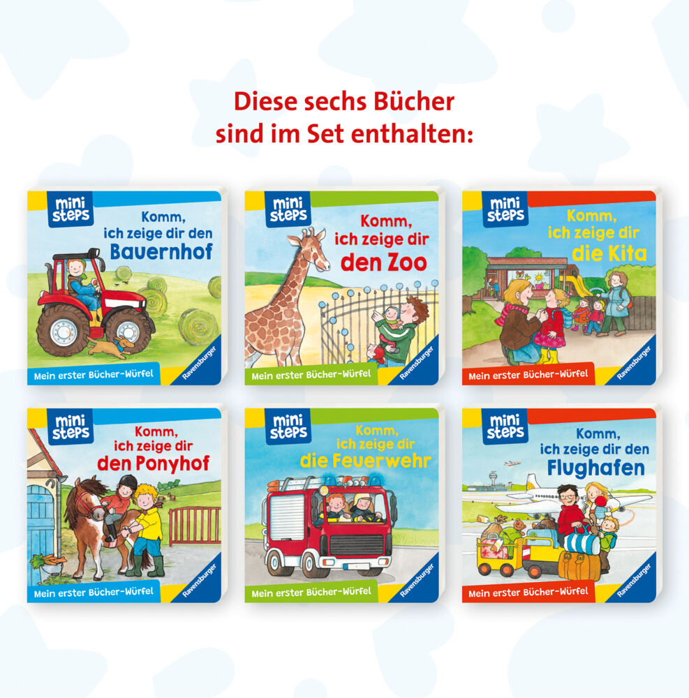 Meine erste kleine Bibliothek Was passiert auf dem Bauernhof, bei der Feuerwehr oder auf dem Flughafen? In diesen sechs Mini-Pappbilderbüchern entdecken Kinder ab 18 Monaten ihre Lieblingsthemen wie Bauernhof, Feuerwehr, Zoo, Kindergarten, Ponyhof und Flughafe...