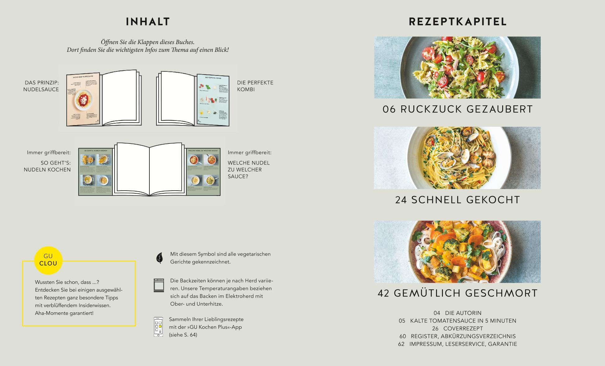 Außerdem zeigt Ihnen GU, welche Ausrüstung Sie brauchen und welche Dinge Sie beachten müssen, um Pasta zu kochen wie beim Italiener. Vorschläge für drei perfekte Saucenkombinationen lassen hier schon beim Durchblättern das Wasser im Munde zusammenlaufen. Erfahren Sie außerdem, welche Nudelsorten es gibt und welche Nudeln sich zusammen mit welcher Sauce zum vollendeten Pasta-Traum vereinen.