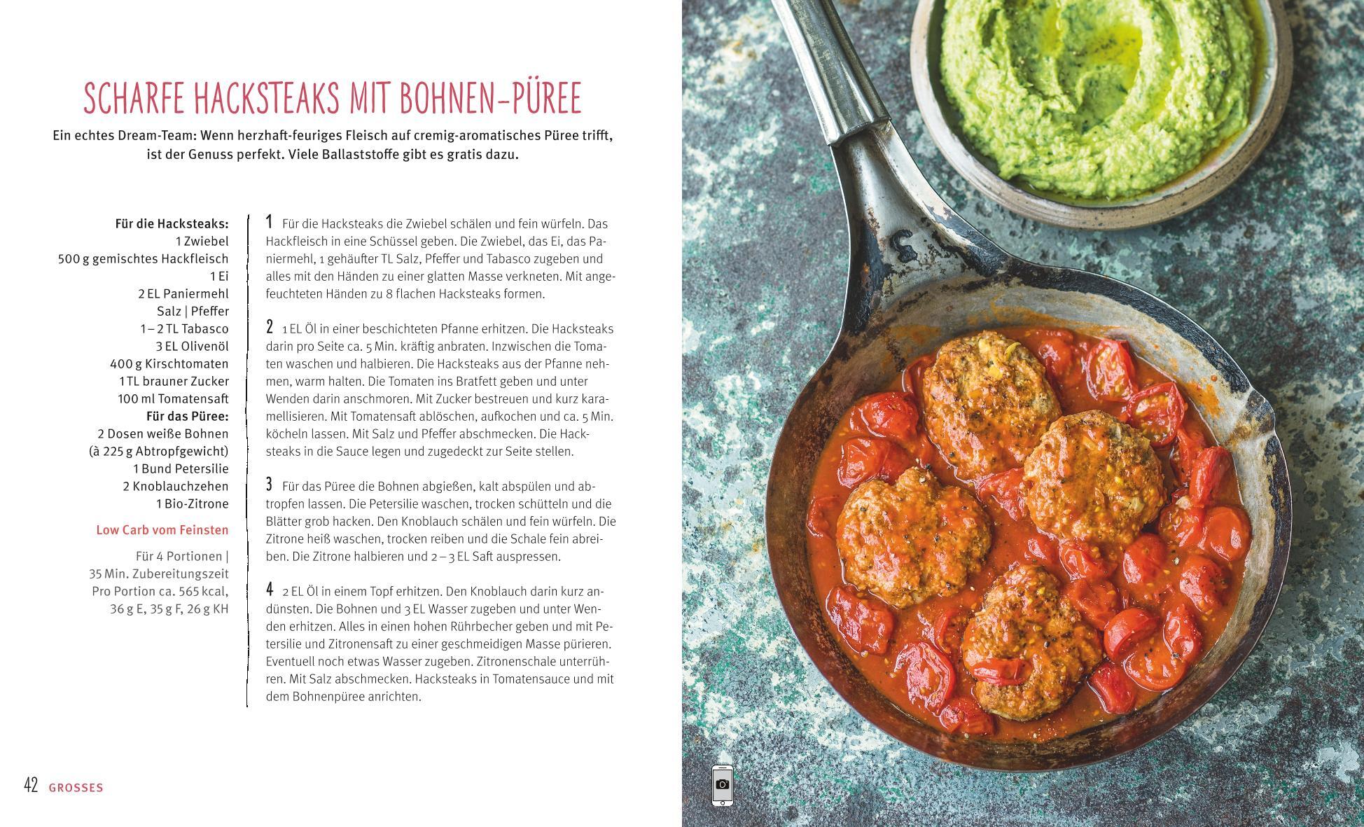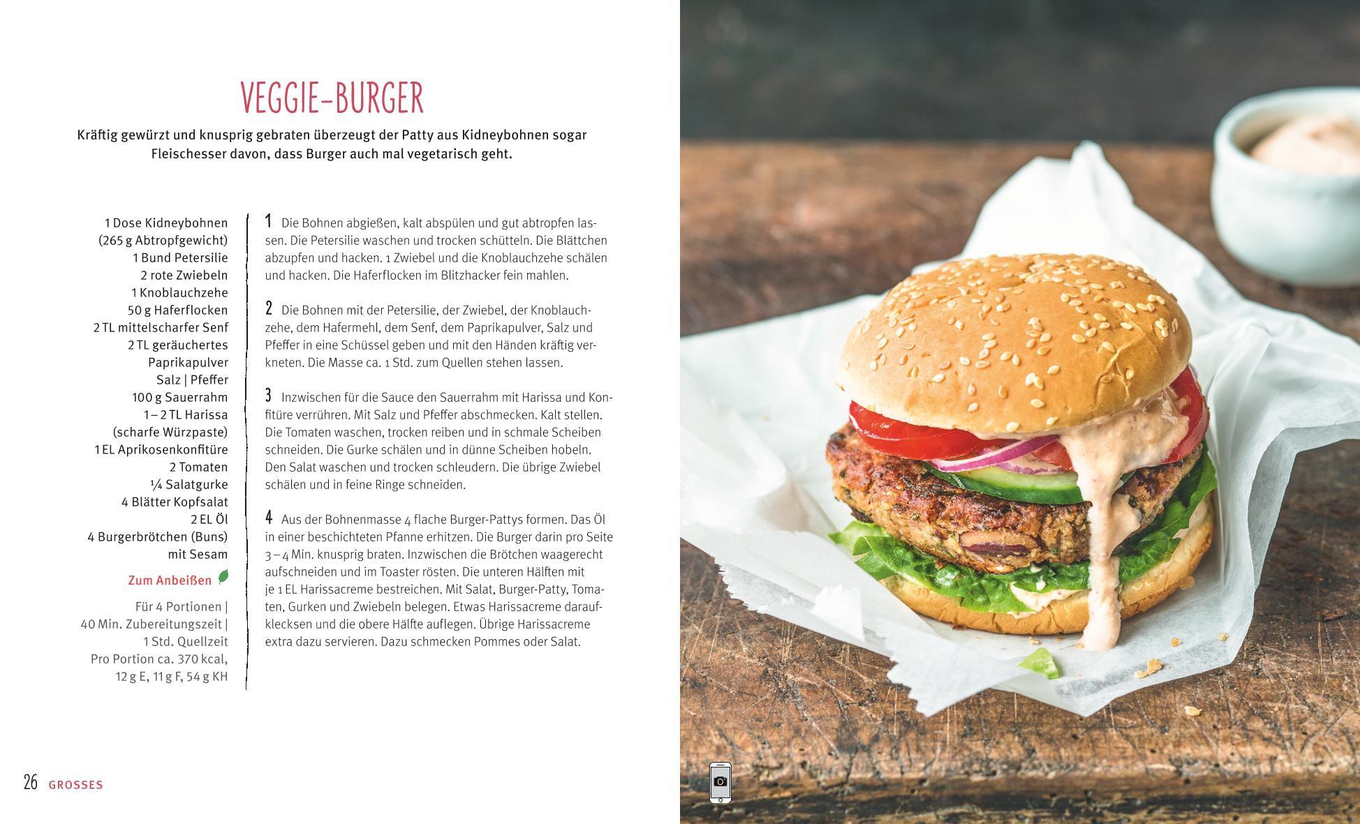 Sattmacher fürs Büro gesucht? Der „Bohnensalat mit Garnelen" passt perfekt in die Lunchbox. Er ist zu Hause nach nur 30 Minuten fertig vorbereitet, kann dann zum Mittagessen schnell hervorgezaubert werden und stillt den Hunger garantiert. Bohnen-Rezepte eignen sich auch prima, wenn Gäste zu Besuch kommen. Als Quesadilla mit Guacamole werden sie zum optimalen Tex-Mex-Fingerfood! Einen Ausflug nach Indien machen Sie mit dem Rezept für „Indisches Augenbohnen-Curry". Die leicht süßlich schmeckenden Bohnen nehmen das Aroma der gewürzstarken Currysauce besonders gut auf. Und Kidneybohnen laufen als Burger-Patty zur Höchstform auf. Bei dem Rezept aus dem GU-KüchenRatgeber wird jeder Fleischesser von der vegetarischen Variante überzeugt!