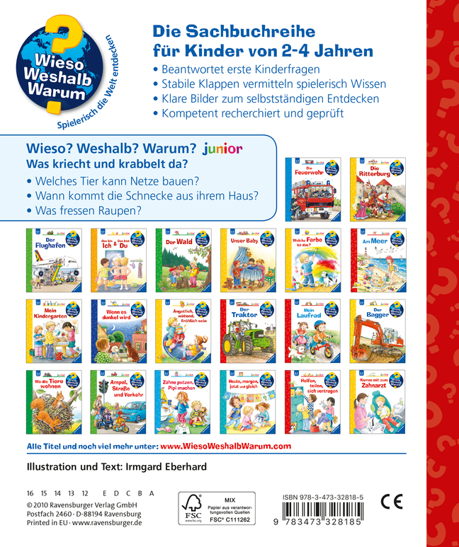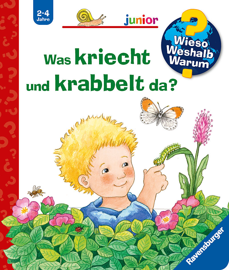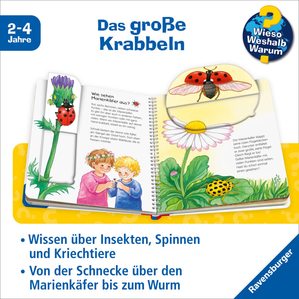 Ravensburger 32818 Wieso? Weshalb? Warum? junior, Band 36: Was kriecht und krabbelt da? WWW-junior (ab 01/06) Im Garten, auf der Wiese, im Wald - überall kriecht und krabbelt es! Mit naturgetreuen Bildern und spannenden Klappen entdecken Kinder hier die intere...