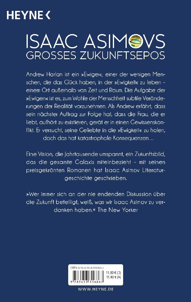 Bis ans Ende der Zeit Die Ewigkeit ist eine Organisation, die mittels Zeitreisen dazu in der Lage ist, kleinste Veränderungen in der Vergangenheit vorzunehmen, um einer zukünftigen Menschheit größeres Leid zu ersparen. Ganz vorsichtig, um keine Paradoxa hervor...