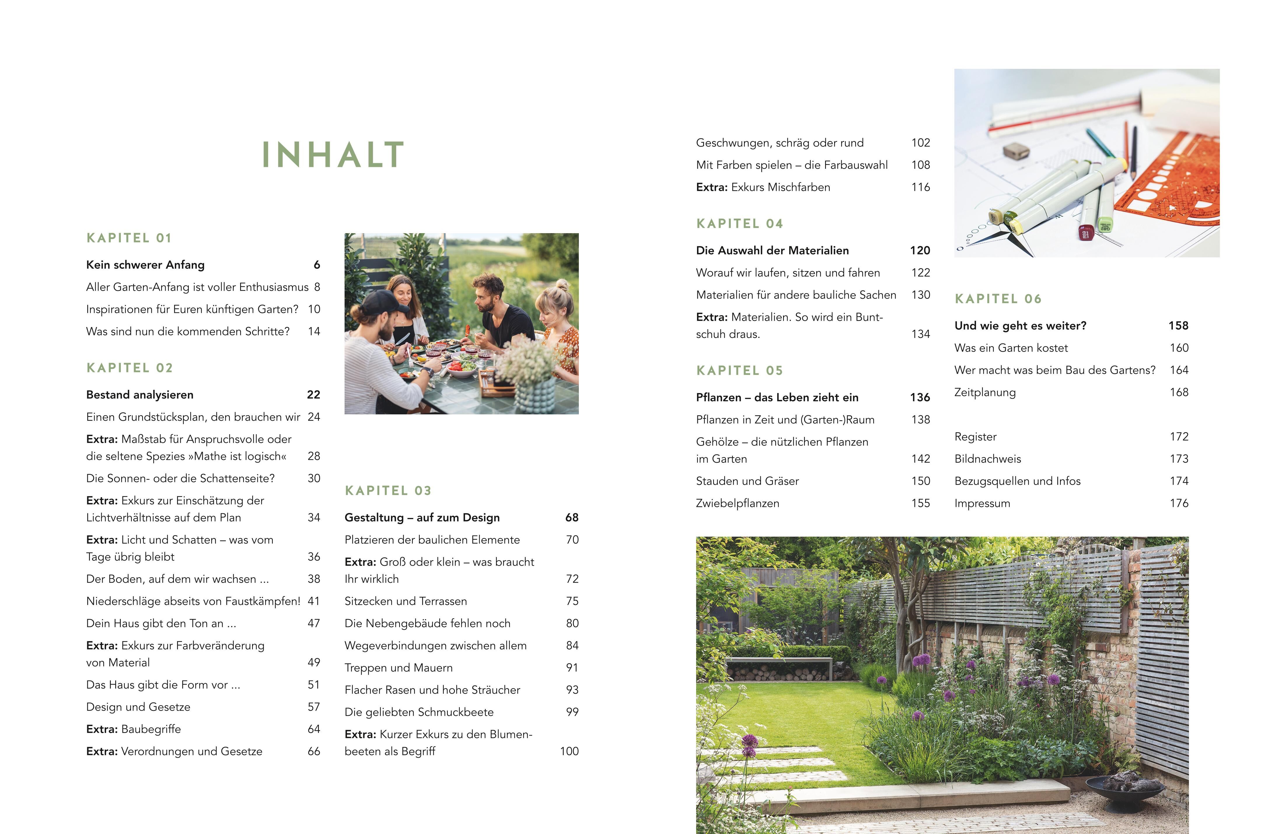 Hinweis zur Optimierung Impressum Wichtiger Hinweis Kapitel 01. Kein schwerer Anfang Kapitel 02. Bestand analysieren Kapitel 03. Gestaltung auf zum Design Kapitel 04. Die Auswahl der Materialien Kapitel 05. Pflanzen das Leben zieht ein Kapitel 06. Und wie geht es weiter? Bezugsquellen und Infos Die Autorin