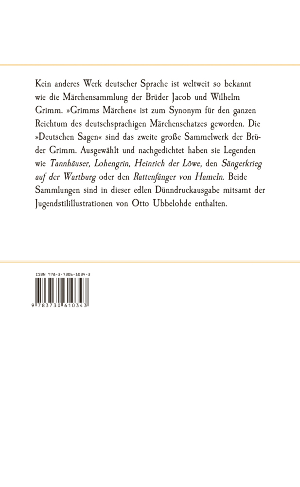 Kein anderes Werk deutscher Sprache ist weltweit so bekannt wie die Märchensammlung der Brüder Jacob und Wilhelm Grimm. »Grimms Märchen« ist zum Synonym für den ganzen Reichtum des deutschsprachigen Märchenschatzes geworden. Die »Deutschen Sagen« sind das zwei...