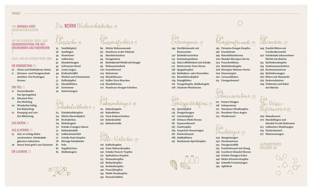 Weißt du noch, wie das FRÜHER BEI OMA war? Die BESTEN ZUTATEN, die man am liebsten vorab genascht hätte, die TEIGVERKLEBTEN HÄNDE, das Warten vor dem WARMEN BACKOFEN? Und dann: der KEKSTELLER, VOLLGEPACKT MIT SÜSSEN KÖSTLICHKEITEN, um den sich alle versammeln. Damit sich jeder seineihre ganz eigenen Kekserinnerungen schaffen kann, gibt's bei Johanna Aust Rezepte für Schokoliebhaberinnen, Nussverfechterinnen, Marzipanfreundinnen ... MÜRBE VANILLEKIPFERLN, FRUCHTIGE LINZER AUGEN oder KNUSPRIGE FLORENTINER - manche KLASSIKER dürfen eben nicht fehlen. Neue KREATIONEN wie CRANBERRY-MANDEL-HERZEN oder zarte SCHNEESTERNE erweitern die Keksdosenvielfalt. Dabei ist egal, ob man Backneuling ist oder routinierter Ausrollexpert*in: Mithilfe der unkomplizierten SCHRITT-FÜR-SCHRITT-ANLEITUNGEN oder den AUSSERGEWÖHNLICHEN REZEPTIDEEN beeindruckst du bei der nächsten Weihnachtsfeier ganz sicher mit deinem Kekskönnen.
