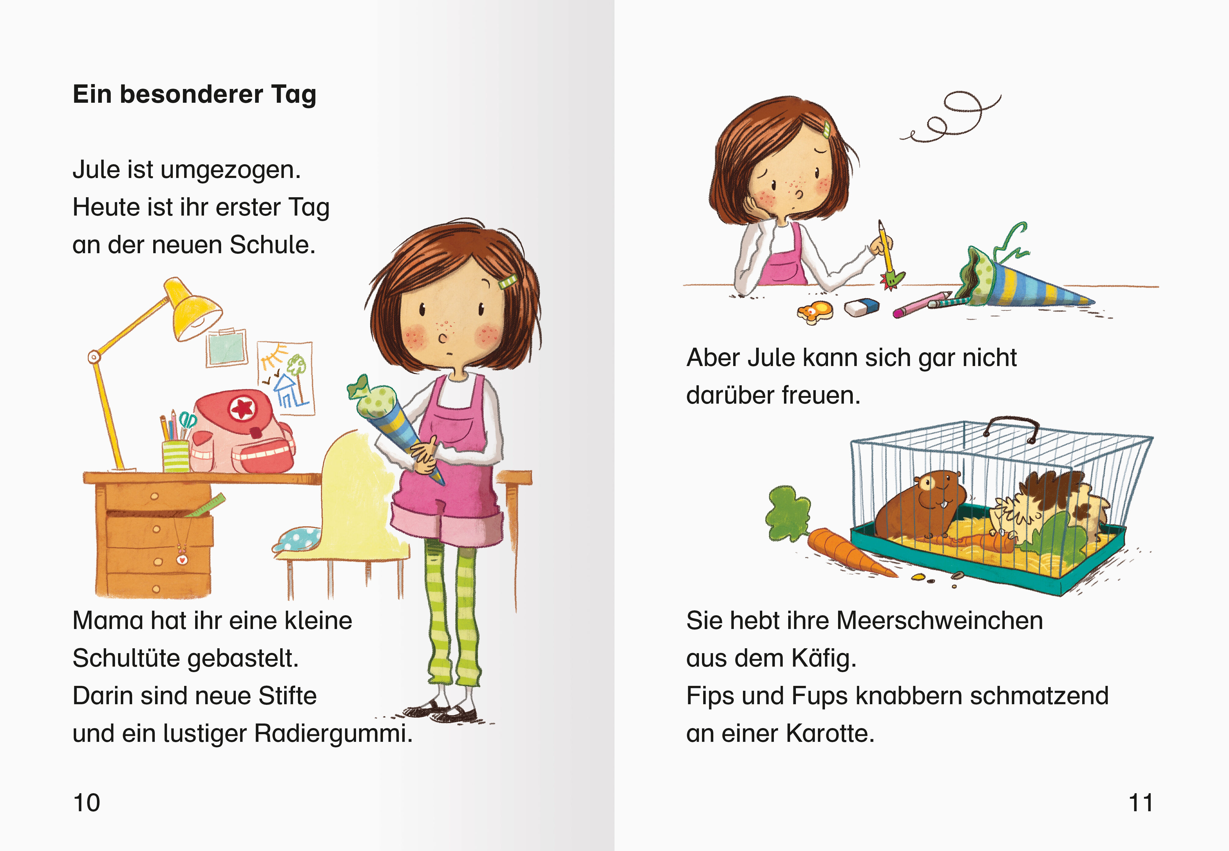 Lesen lernen wie im Flug! Um sich an ihrem ersten Schultag nicht einsam zu fühlen, packt Jule ihre beiden Meerschweinchen in den Schulranzen. Doch im Klassenzimmer angekommen, ist der Ranzen leer! Wird Jule Fips und Fups wiederfinden? Lara hingegen möchte ihre...