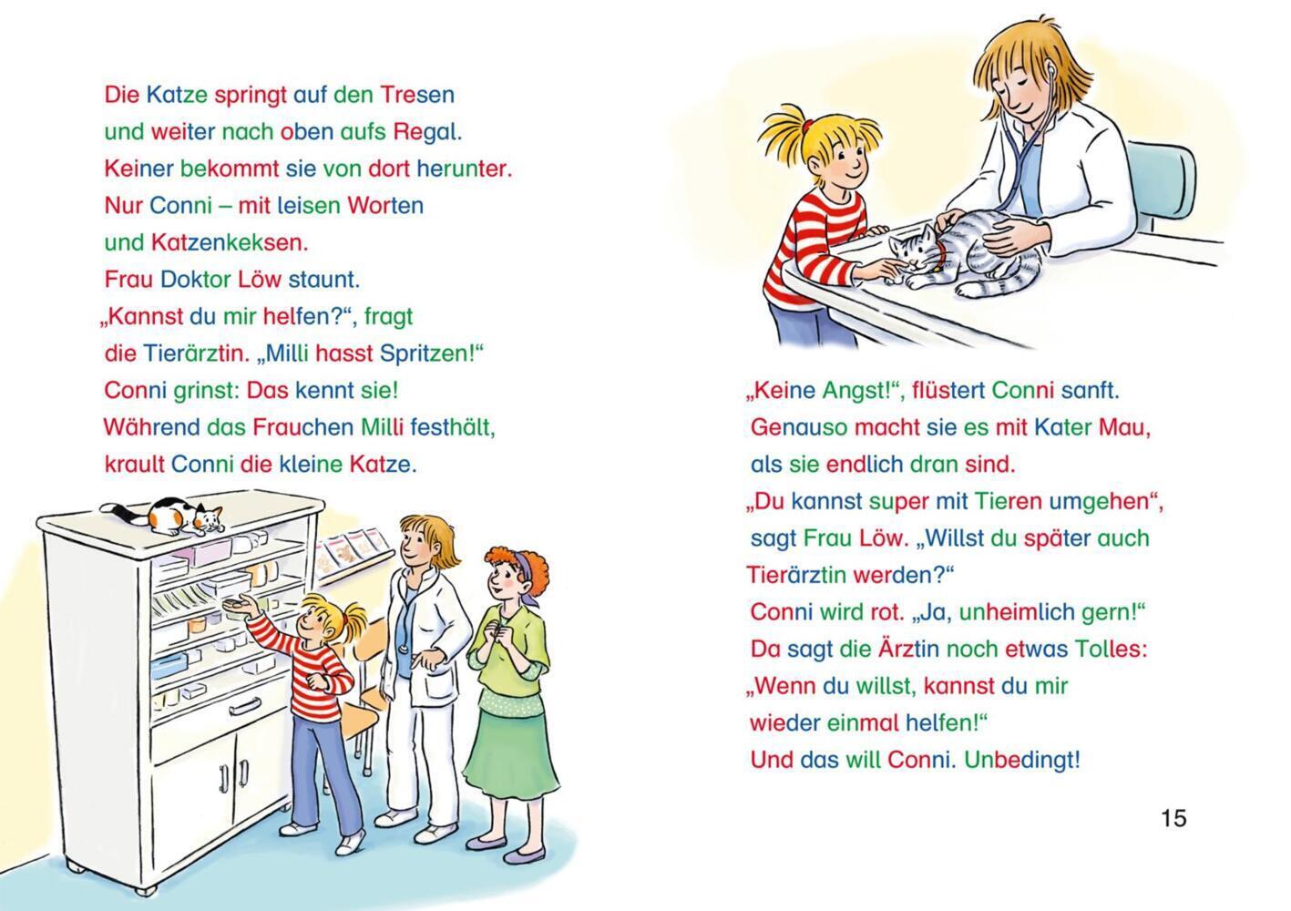 Silbe für Silbe zum Lese-Erfolg! Drei Conni-Geschichten für Leseanfänger mit farbiger Silbenmarkierung. Lesen Lernen in kleinen Schritten! Drei Conni-Geschichten für Leseanfänger erzählen von einem tollen Tag bei der Tierärztin, einer lustigen Übernachtungspa...